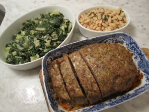 Along with the meatloaf, I served white beans with sage and sauteed swiss chard (from my freezer already cooked from the fall crop).