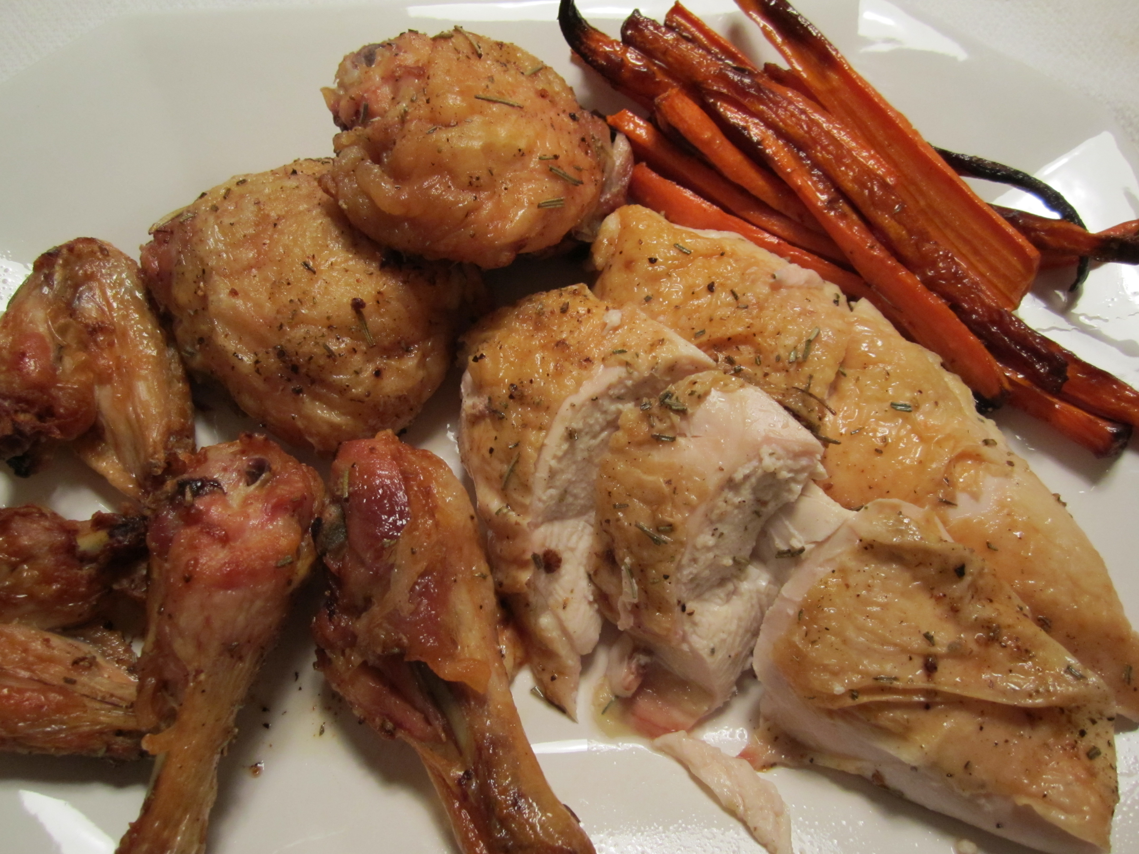 However, of all the ways, this is the one of which I’m the most proud. It is a method which addresses the breast and dark meat separately, and which allows some spare parts with which to make stock (and thereby, risotto). It may seem a little laborious but just bear with me–the results are worth it.