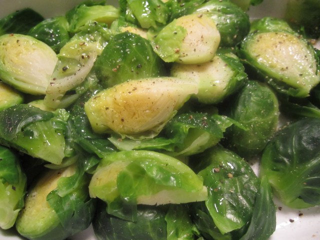 I’m accompanying it with some brussels sprouts, simply boiled in salted water for 5 minutes and dressed with salt and raw olive oil.