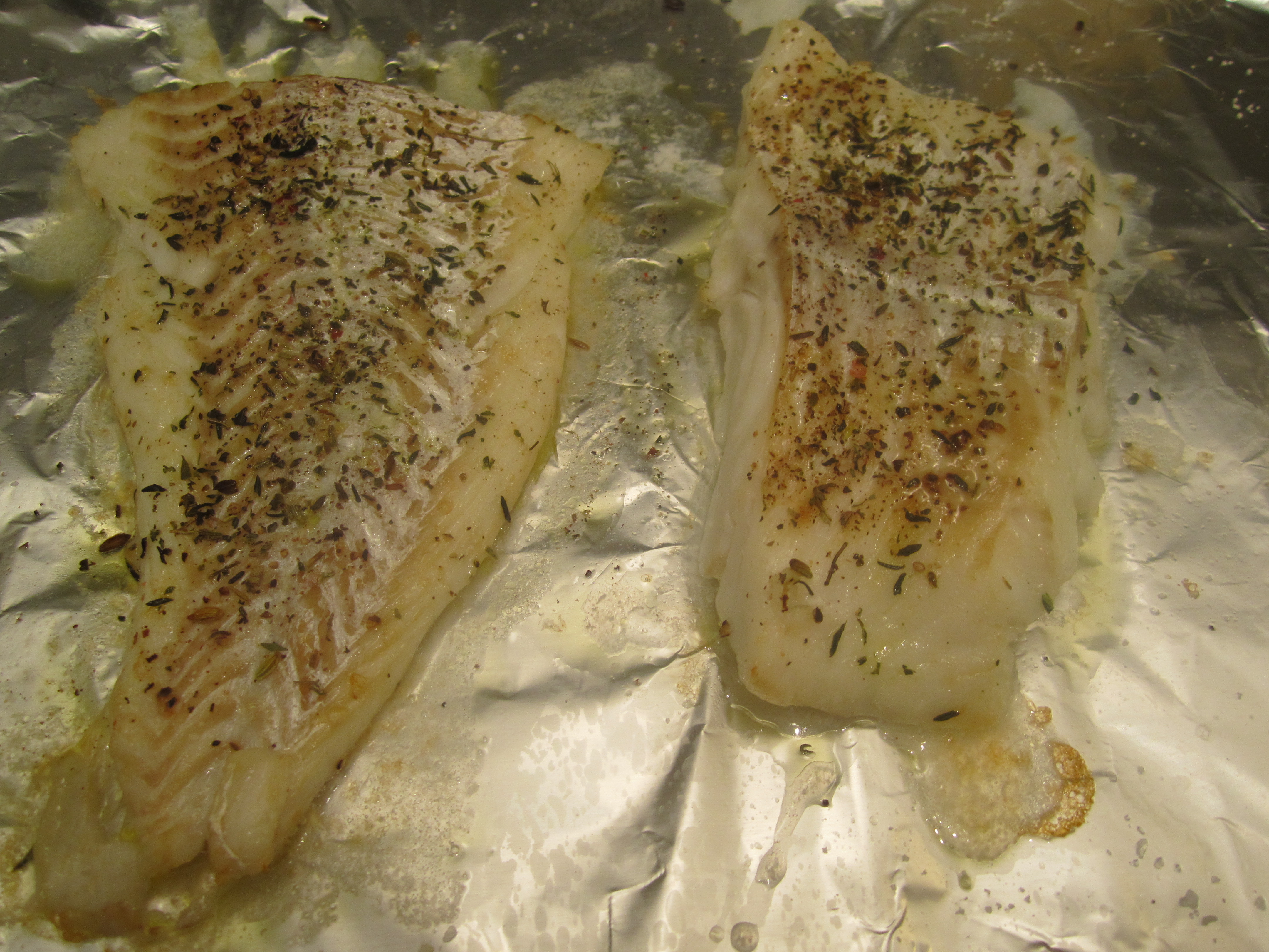 Here’s another basic, simple meal to make in a basic, simple kitchen. Broiled cod dusted with some herbs de provence, and dressed with lemon and raw olive oil. This follows the theme of last night’s meal in the city: broiled seafood because it broils quickly and the amount of smoke it produces is minimal (much less than broiling a piece of meat).