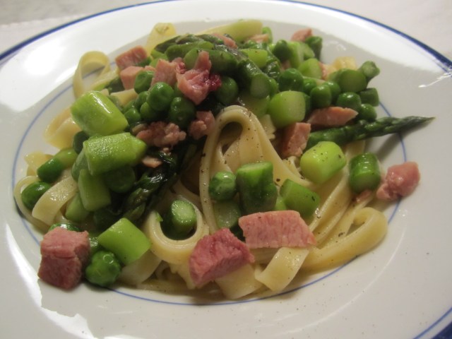 Pasta with Ramps, Peas and Asparagus (and Ham)