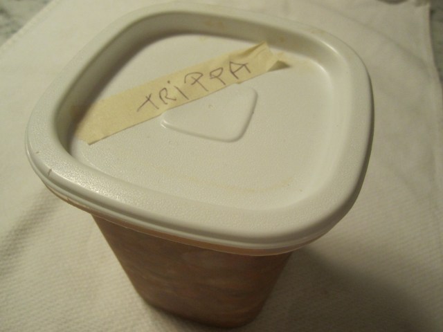 Beppi had obviously been at it in the kitchen again (since it’s been too cold to work in the garden), and today–it’s one of my favorites–tripe. Many of you might be squeamish about the idea of tripe (cow’s stomach), but it is a great delicacy that not many people know how to make or enjoy anymore. It’s rarely served at restaurants and it’s odd that in the quest for lighter dishes rich in protein, tripe is often overlooked. Rich as it tastes, it’s actually a very lean source of protein.