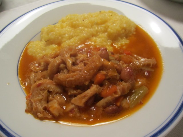 The perfect accompaniment to this dish is polenta (the recipe for which you can find in a prior post of mine). Beppi’s SO happy when I tell him I’m making polenta to accompany his tripe. “Perfetto!” he praises, “trippa colla polenta”, as if I couldn’t have made anything that would better crown his masterpiece. “I hope you enjoy it–I made it with all my heart,” he proffers, with his luminous smile.