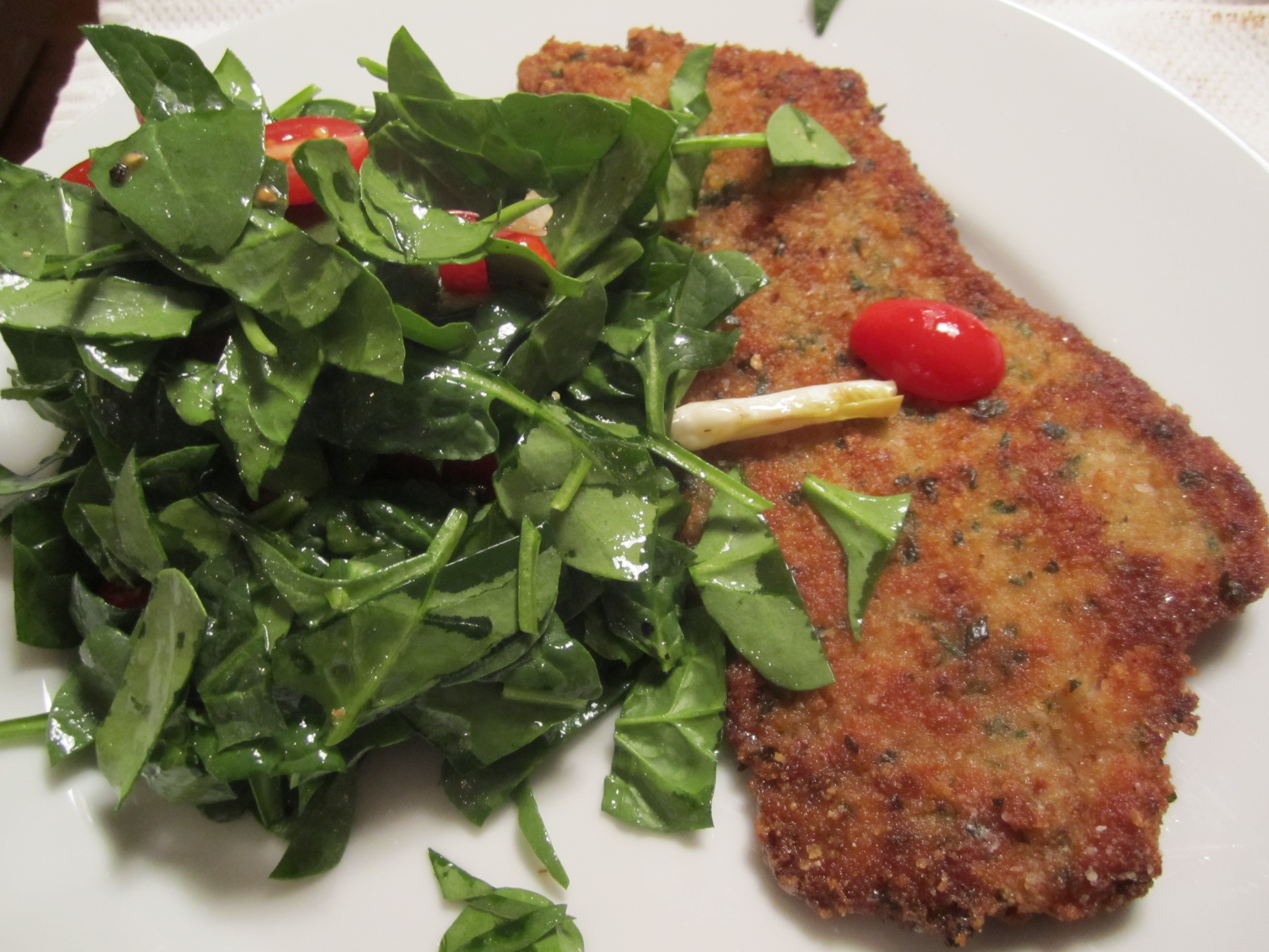 Tonight, I’m serving mine alongside a spinach , radicchio and tomato salad dressed with lemon and olive oil.