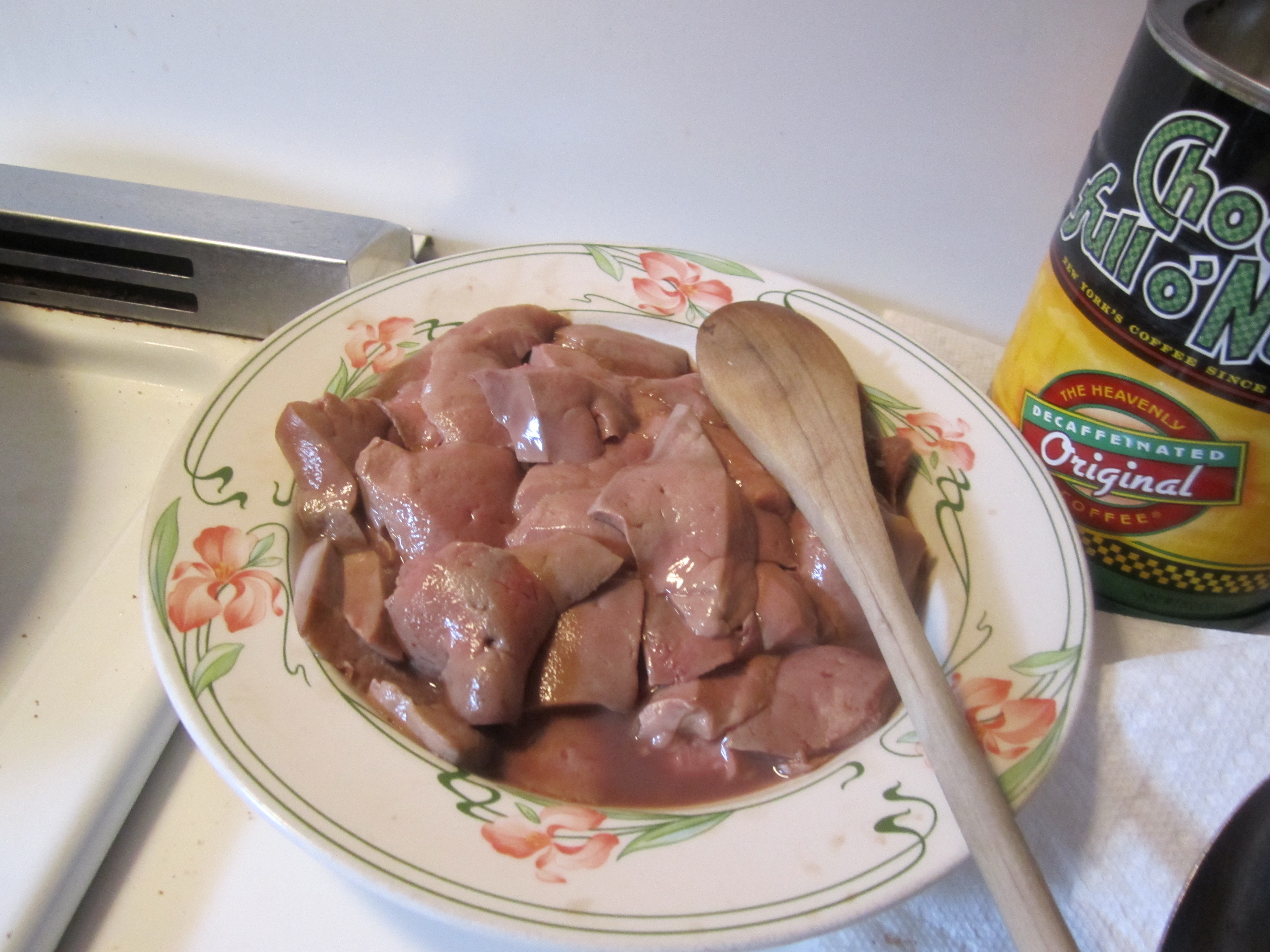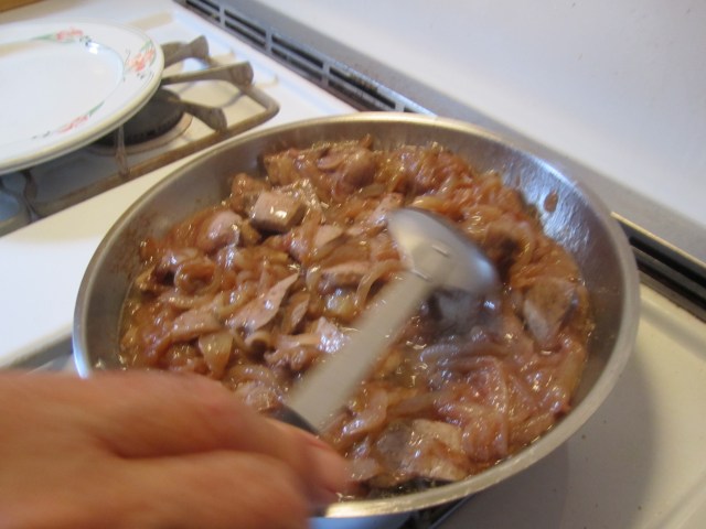 That’s it–it’s very quick. If you overcook the liver it will be tough–you want it medium rare. That’s why the size of the pieces of liver is critical–if the pieces are too large, it will take too long to cook them properly and the liver will toughen and dry.