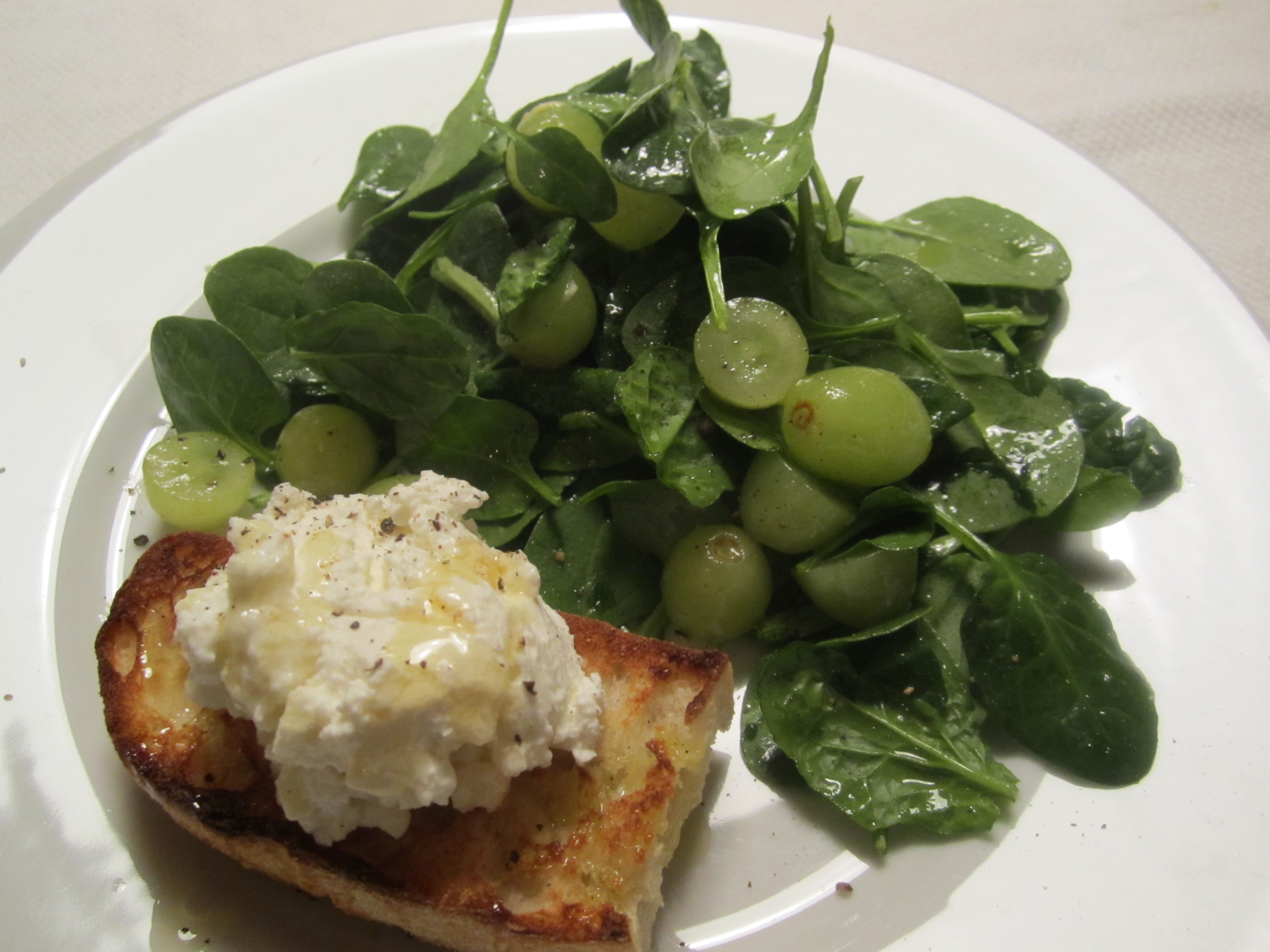 Spinach and Grapes with Ricotta Bruschetta
