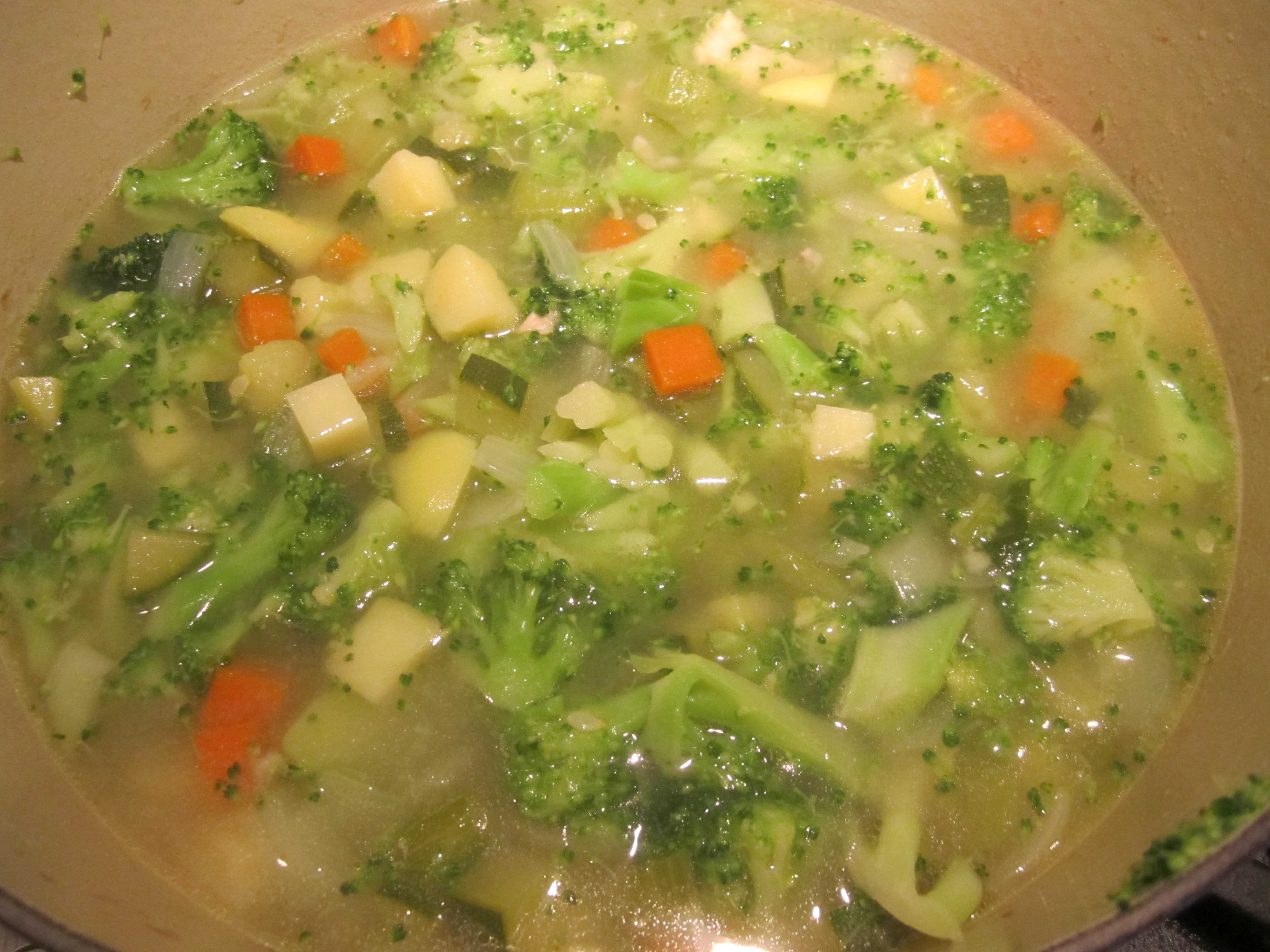 Add in vegetables, except for broccoli. Simmer vegetables for approx. 1/2 hour.