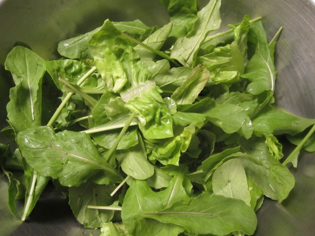 This reminded me of a similar dish we used to make at Po Restaurant, which was topped with black olive tapenade and a pile of salad. I happen to have some absolutely beautiful lettuce and arugula from my neighbor Beppi’s vegetable garden, so it felt like the perfect time to make this light, summery dish.