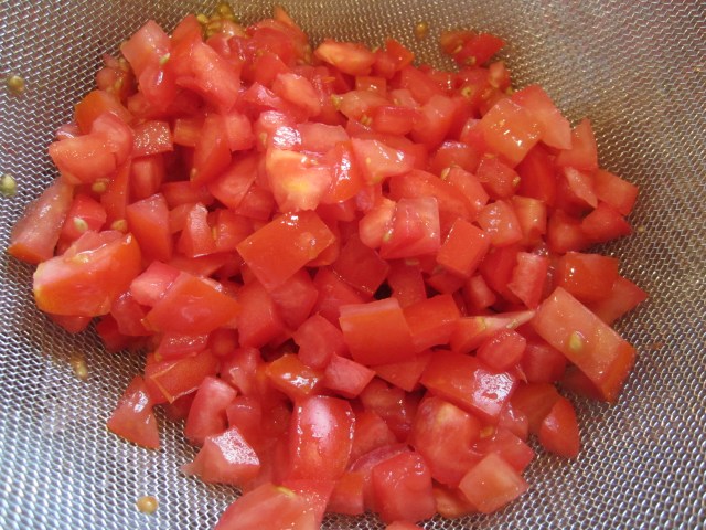 Place tomatoes in strainer over a bowl and allow to drain while fish is marinating.