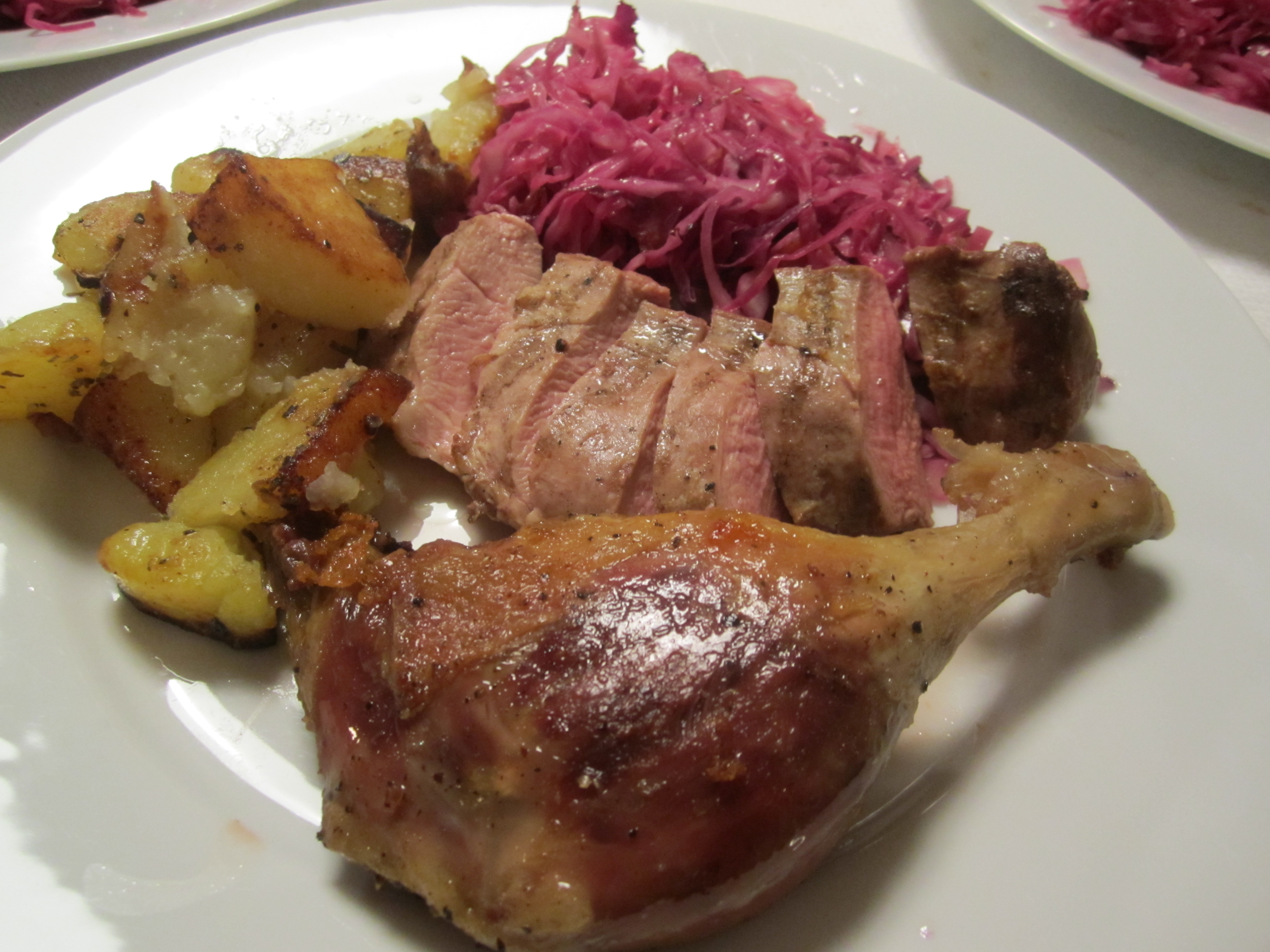 Because I can’t seem to cook a duck without doing all of the above, I save it for a day when I have the entire afternoon to devote to my duck–like today. I’m having a group of friends for dinner, one of whom maintains that she has never eaten any duck other than mine–so I decided to surprise her.