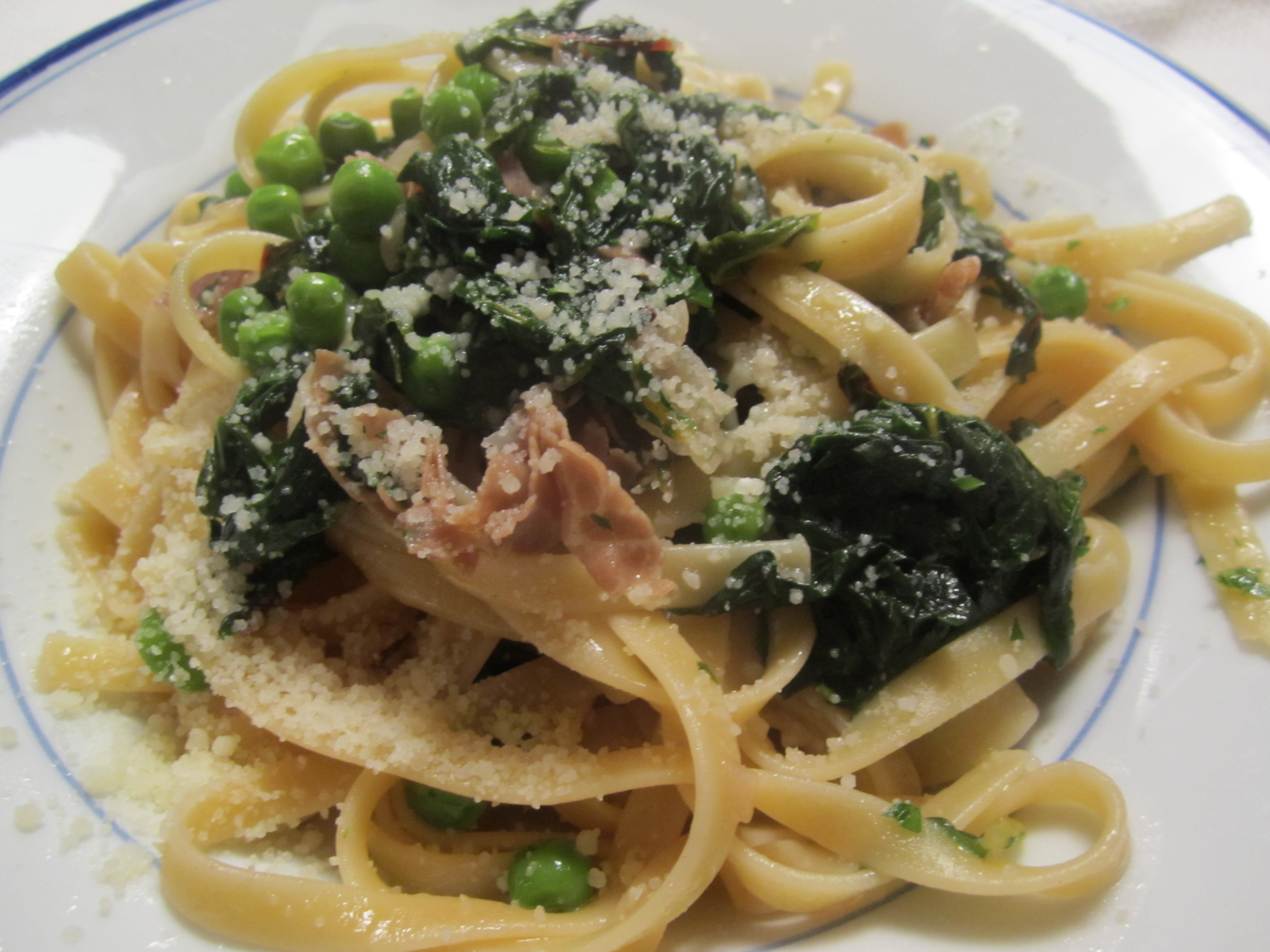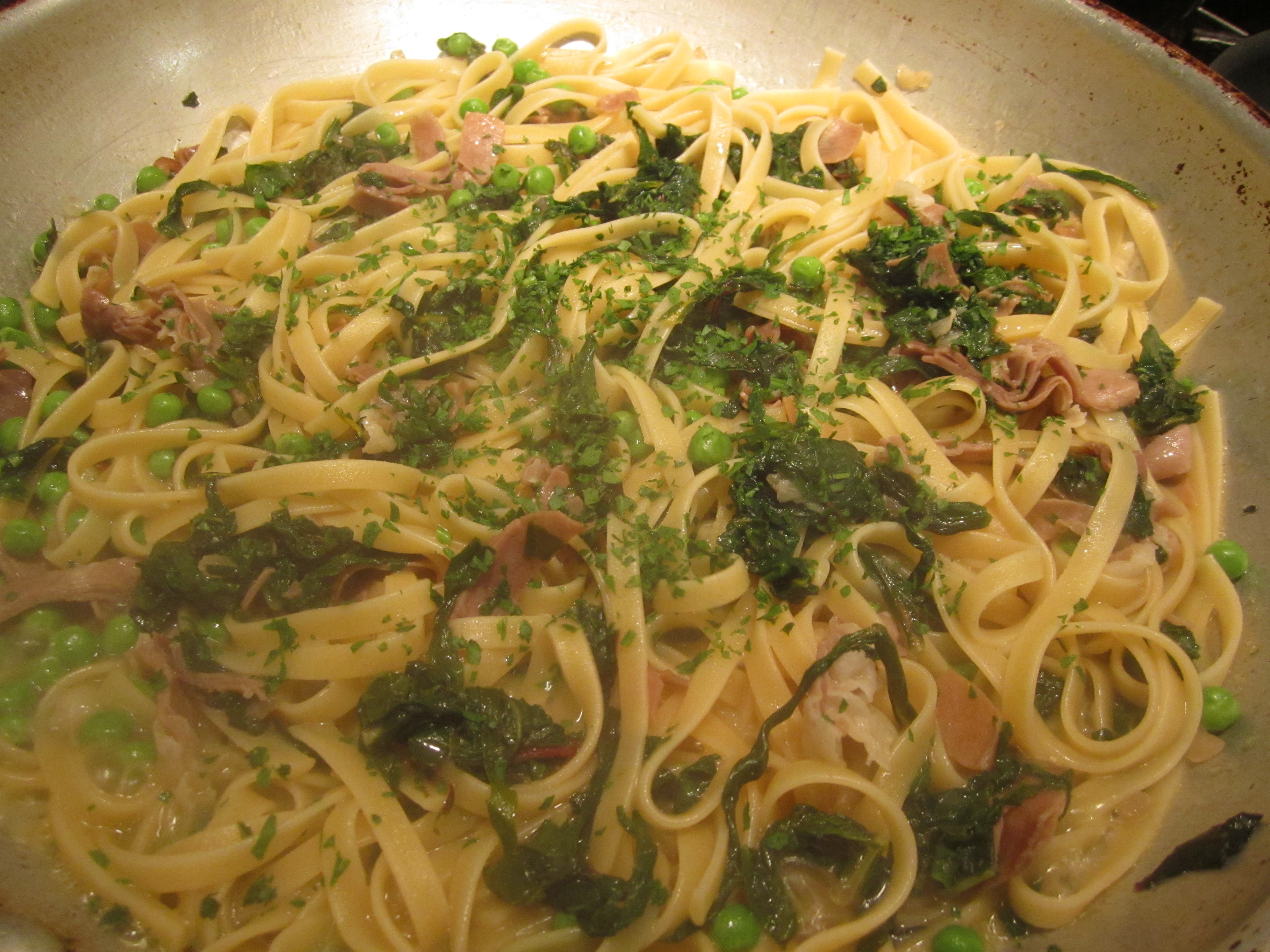 Pasta with Swiss Chard, Prosciutto and Peas