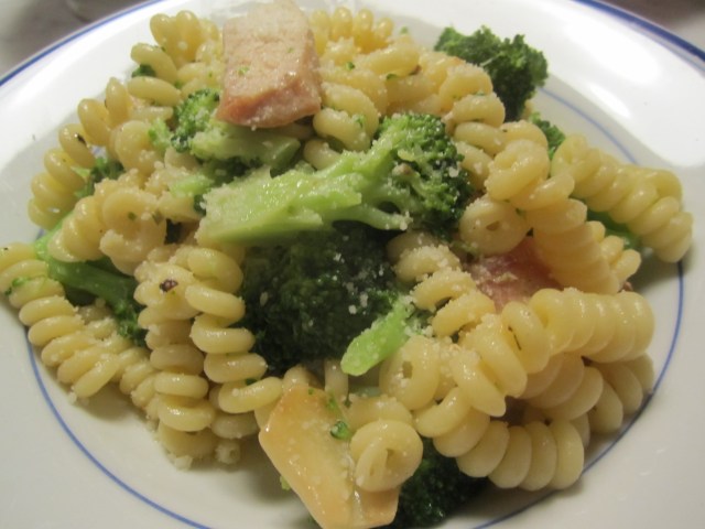 This dish is one of those one-pot wonders that is so simple and easy, it can be made and served as an elegant dinner all by itself. It’s particularly good tonight because both broccoli and garlic are fresh and local.