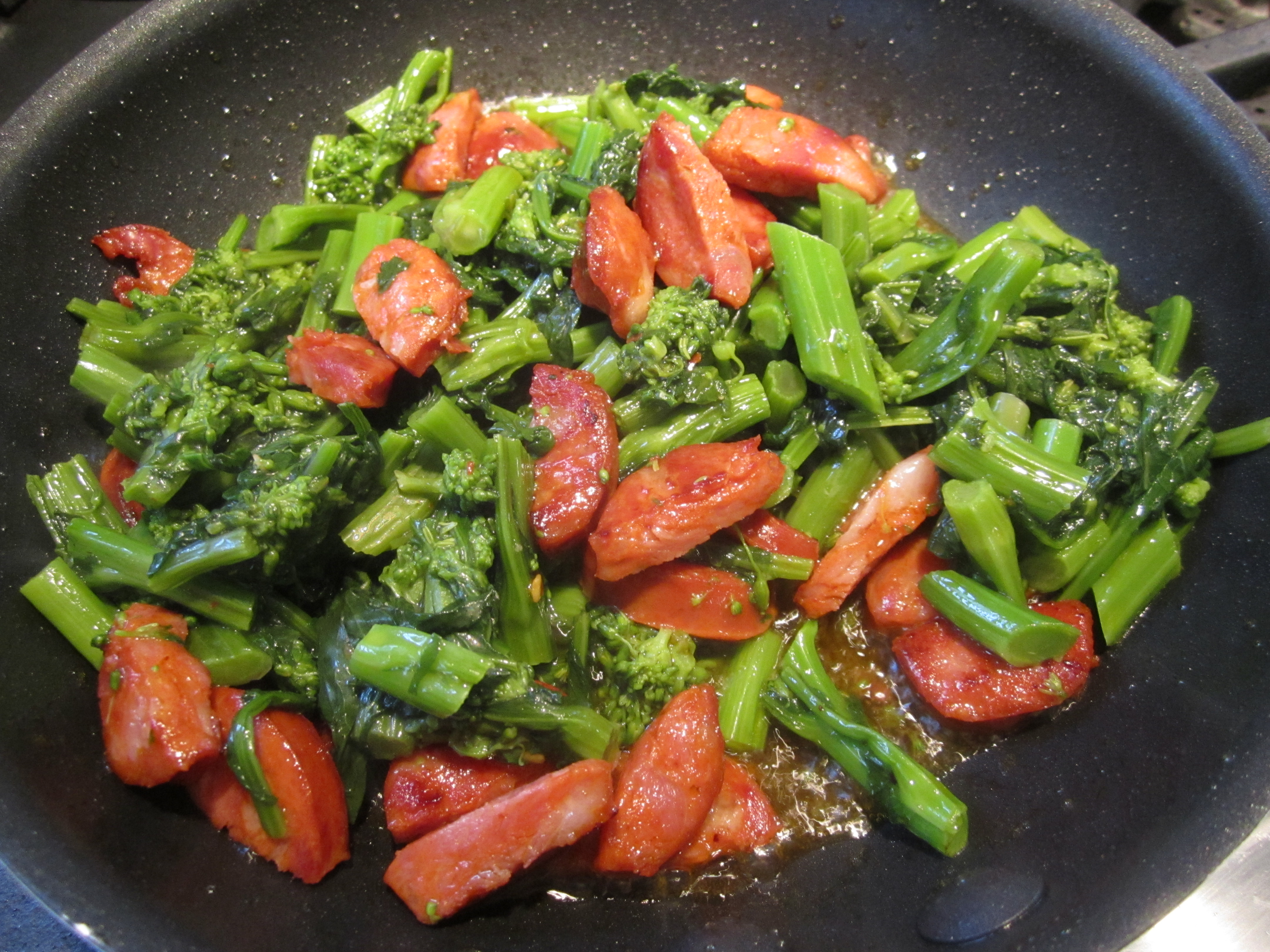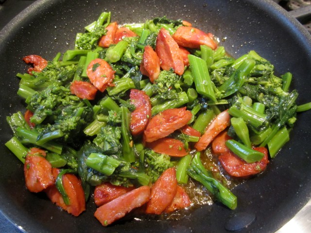 1 bunch of broccoli di rapa, chopped, blanched, drained and sauteed with garlic and olive oil.