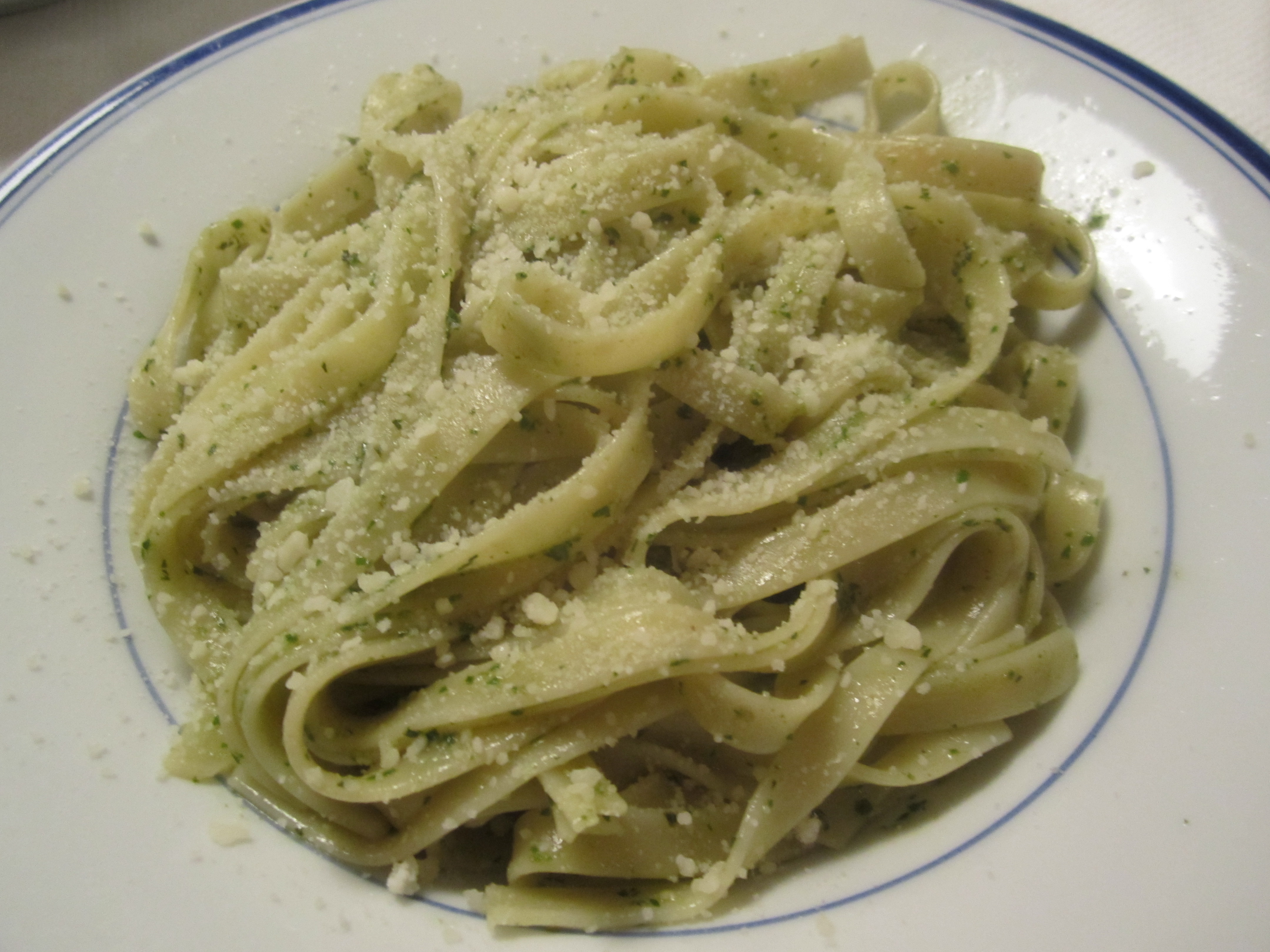 To start, we’re having a bowl of pasta with pesto (the pesto is courtesy of my neighbor, Beppi).