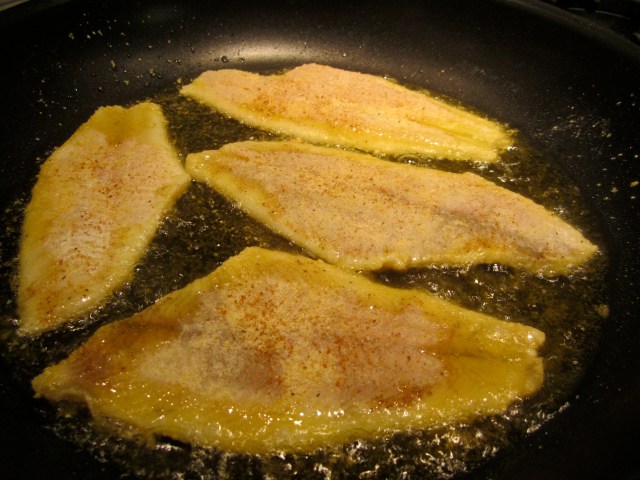 The filets only need a minute-and-a-half or so on each side. Be careful when turning and use a large spatula or two–they break easily.