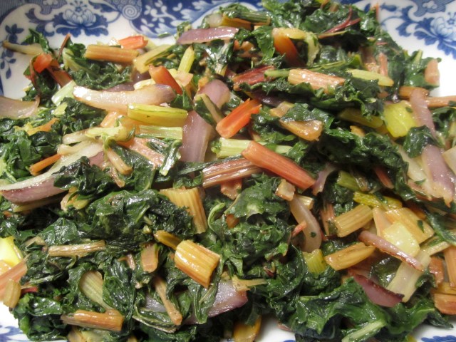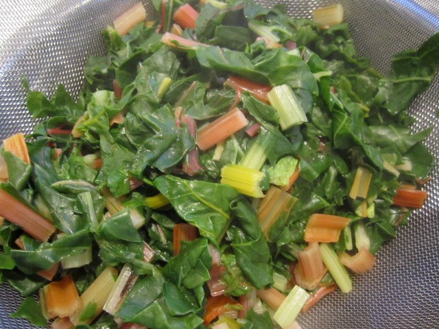 This is a very simple preparation. Simply wash well and cut the stalks (including the stems) into 1″ ribbons. Boil in plenty of well-salted water for about 10 minutes, then drain well in a strainer.