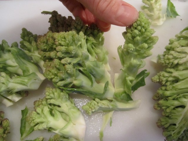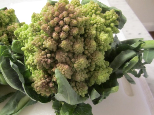 This vegetable, actually part of the cauliflower family is wonderfully nutty and nutritious. It’s grown locally this time of year. The heads are a series of little stalks with peaks that look more like a desert cactus than an edible crucifer.