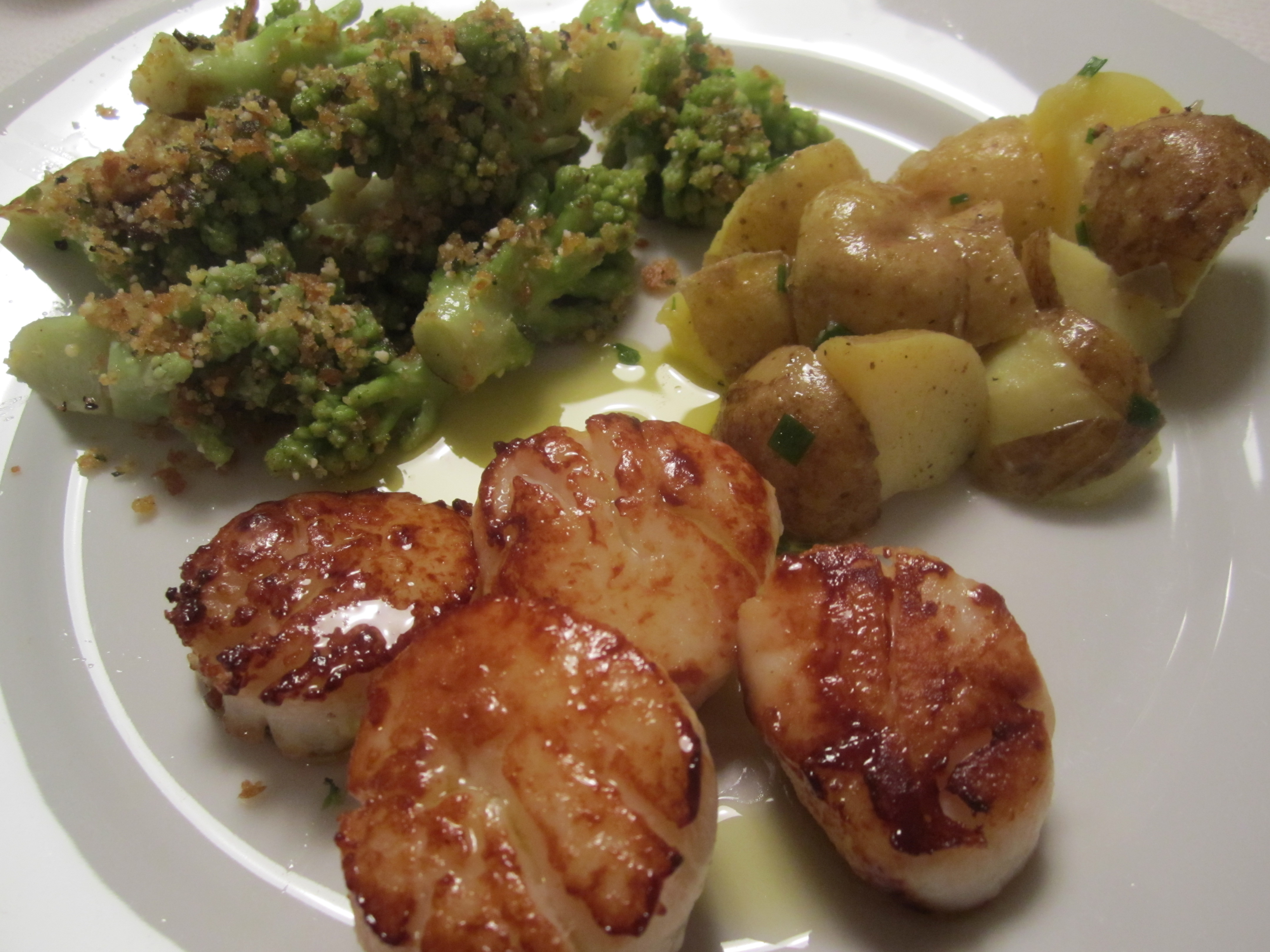 Tonight, I’m serving the broccoli with simple seared scallops and boiled new potatoes with olive oil and chives.