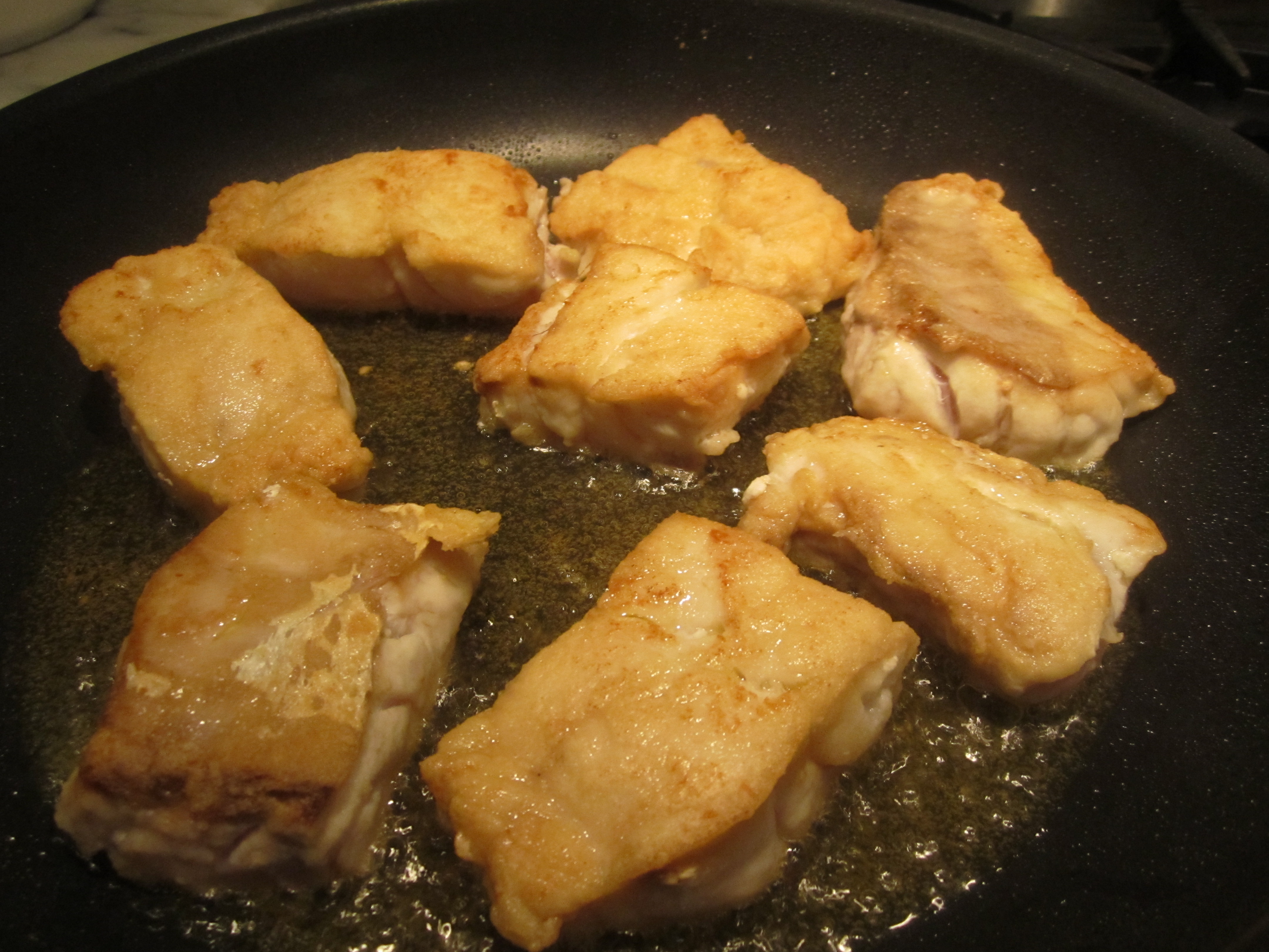 Turn and briefly fry on the other side (about 1 minute). Remove fish and set aside.