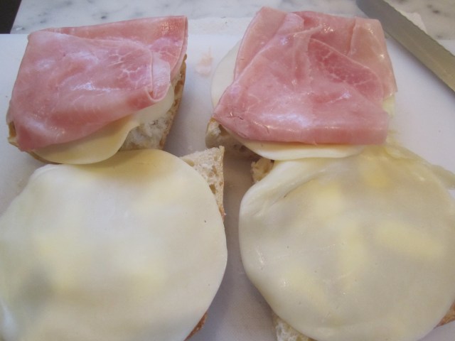 Add 2 thin slices of provolone and 2 thin slices of of ham.