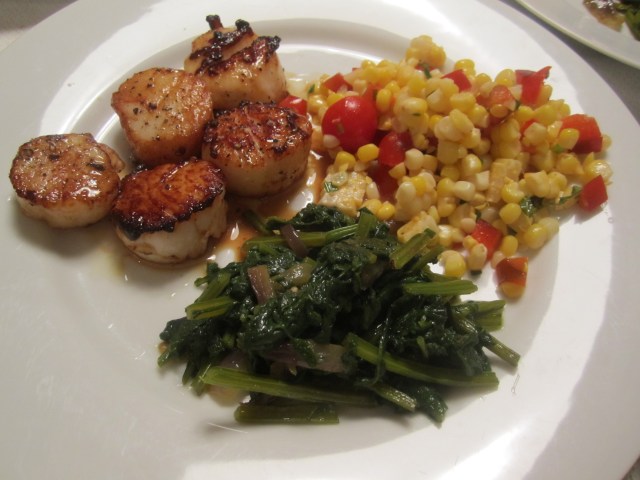 Tonight this salad was the perfect first course to our meal of seared scallops, corn salad, and sauteed beet greens with onions (see sauteed swiss chard but substitute beet greens for chard). Expert photography by my friend, Elle.