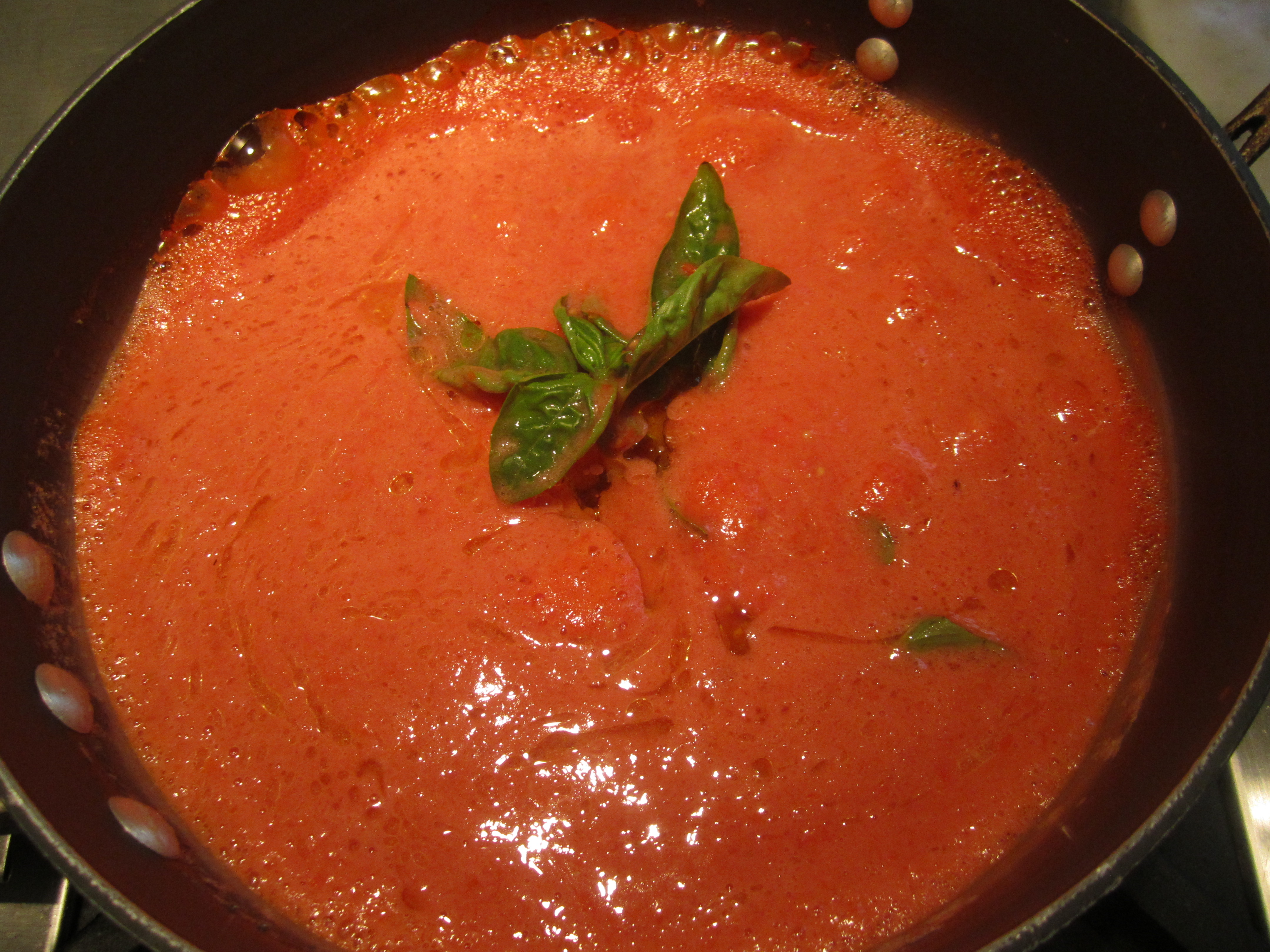 Tonight, along with our salad, I made a fresh tomato sauce which consisted of nothing other than some fresh summer tomatoes (a mixture of cherry tomatoes and plum tomatoes from Beppi’s garden, pureed in the blender, along with some olive oil and a sprig of basil.