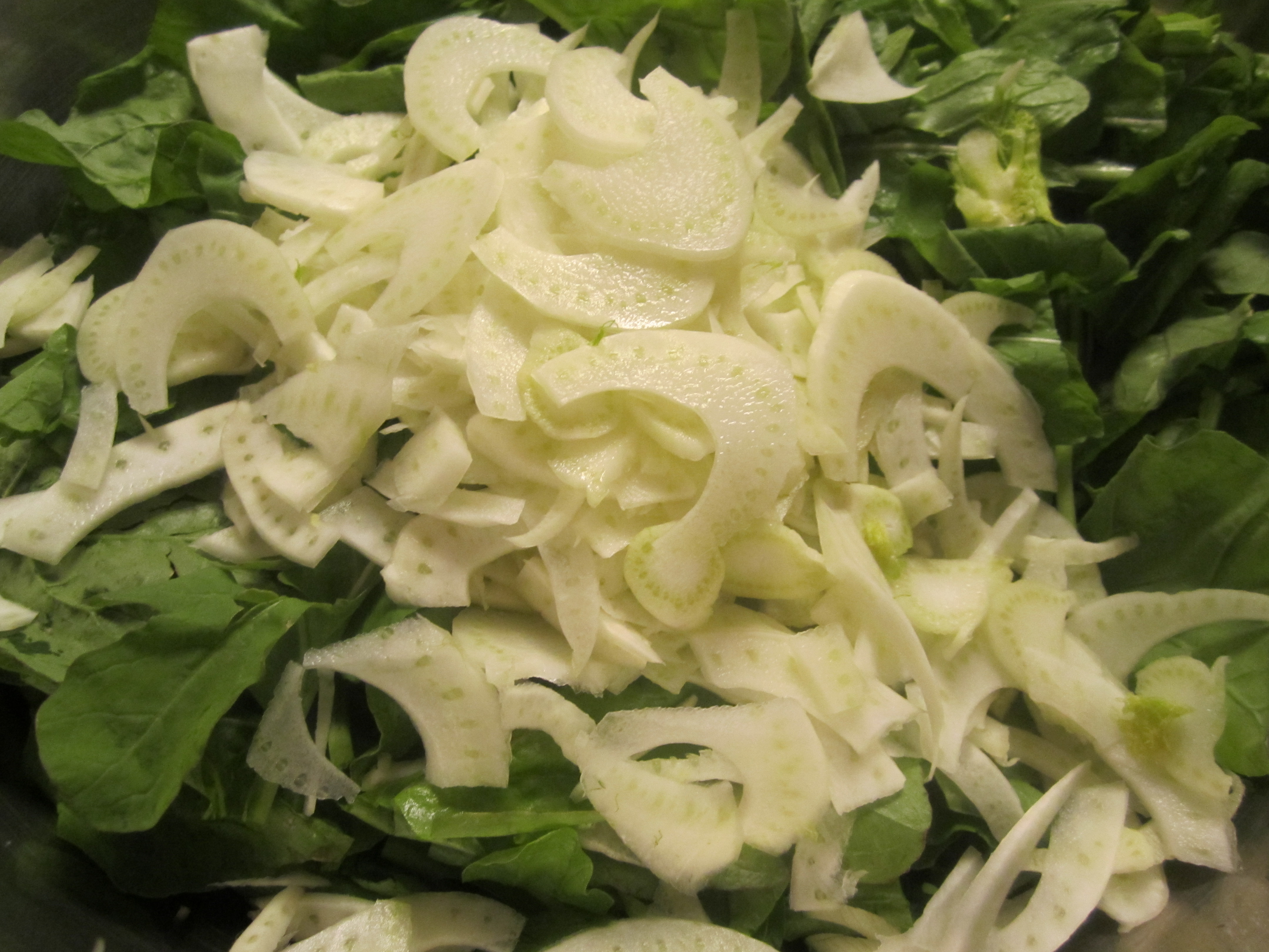 This is a great first course or light lunch year-round. Right now, arugula and fennel are local, and they grow locally well into the fall. Part of the occasion for this salad is the beautiful wedge of parmigiano my mom brought back from Italy last month.