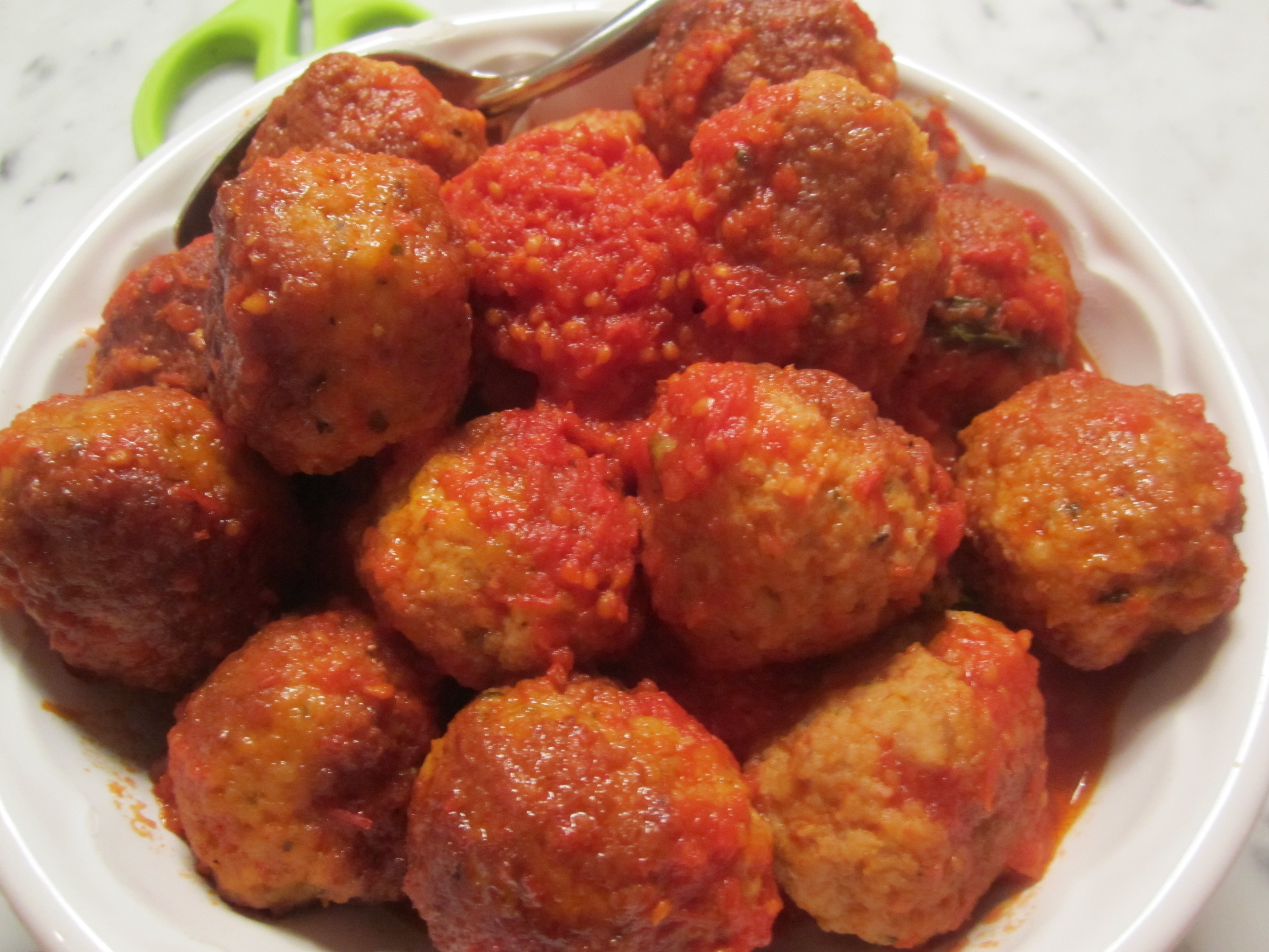 As the sauce began to simmer, I browned a batch of turkey meatballs and dropped them in for 15 minutes.