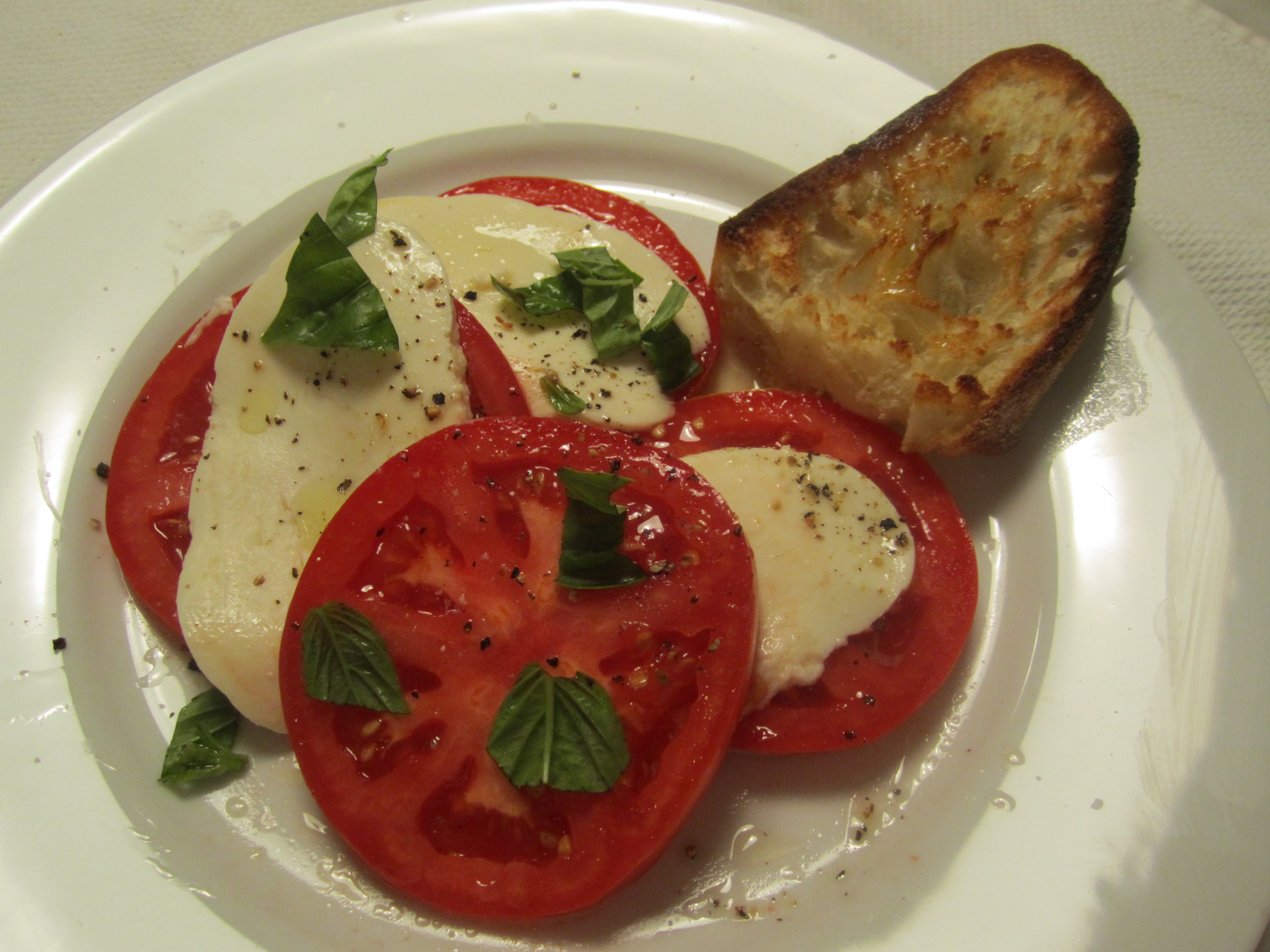 Tonight we’re having a beautiful caprese salad as a first course (maybe the last one of the season) with some tomatoes I’ve had ripening for a week on my window sill.