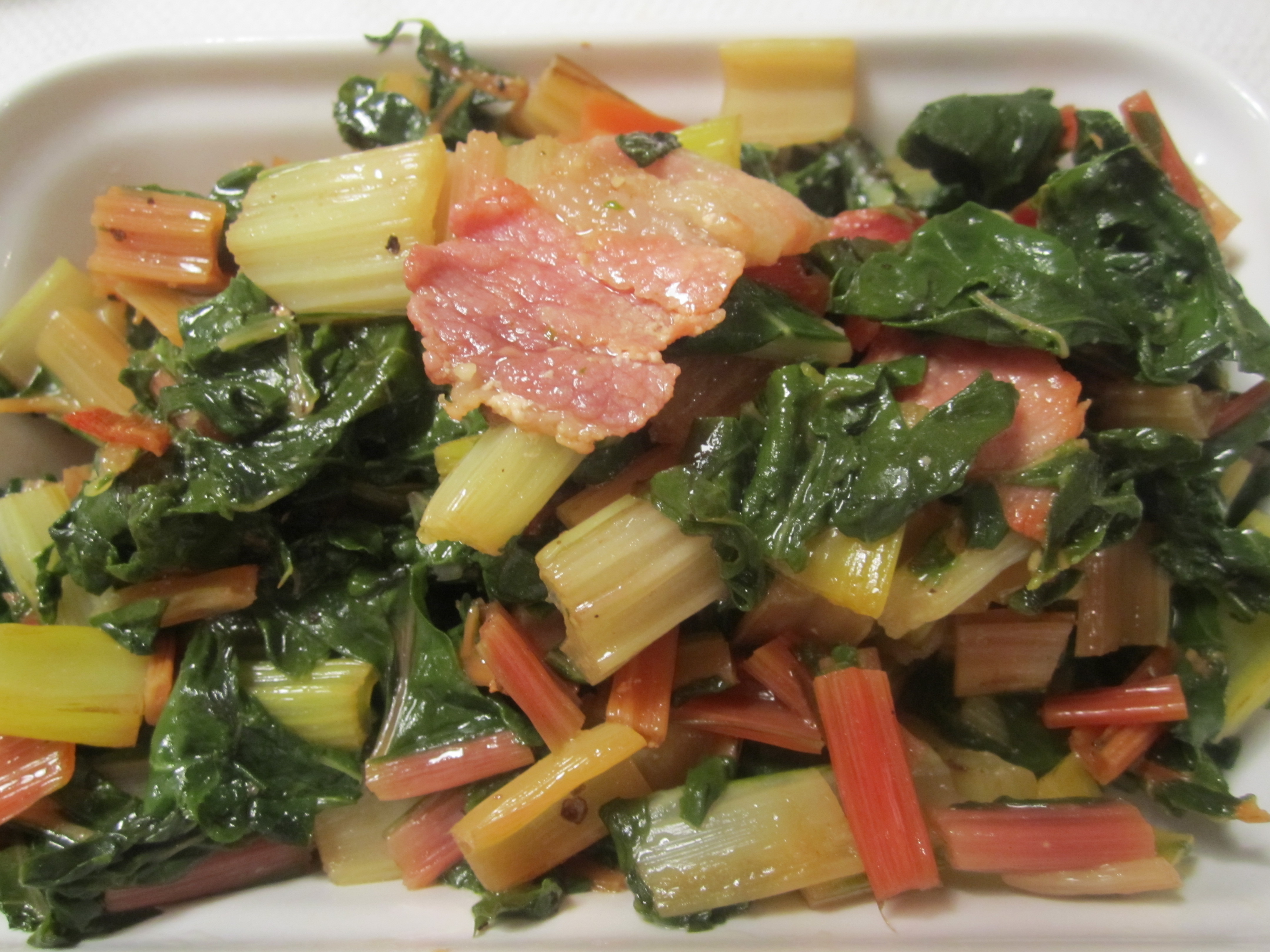 After the salad, we’ll have the pasta plus a vegetable on the side–swiss chard–boiled, then sauteed with olive oil and salt pork.