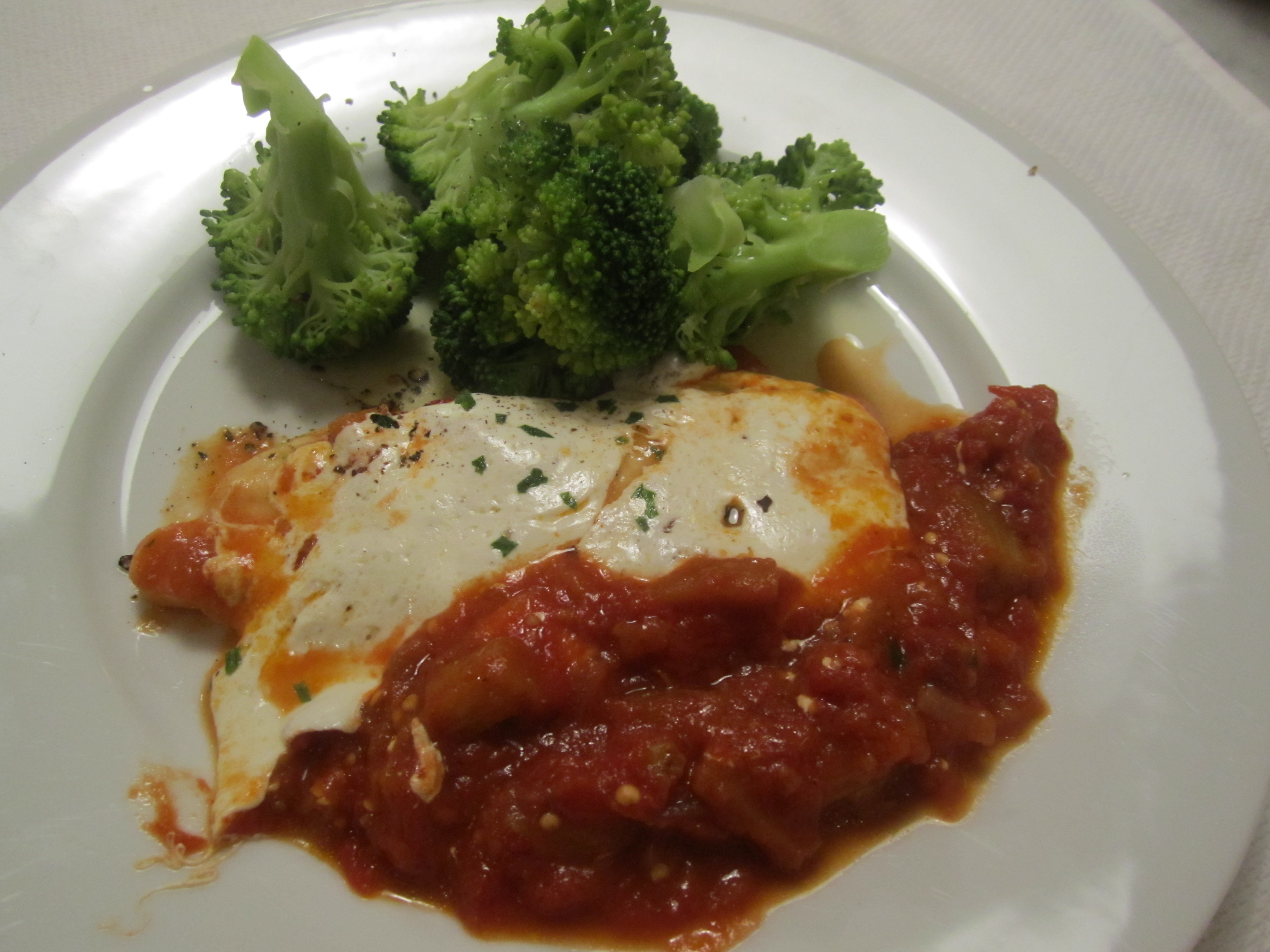 Before I freeze the remainder of my Two Hour Eggplant Sauce, I’ve decided to make a quick dinner featuring it. Eggplant and chicken are great together and this dish highlights their subtle combination.