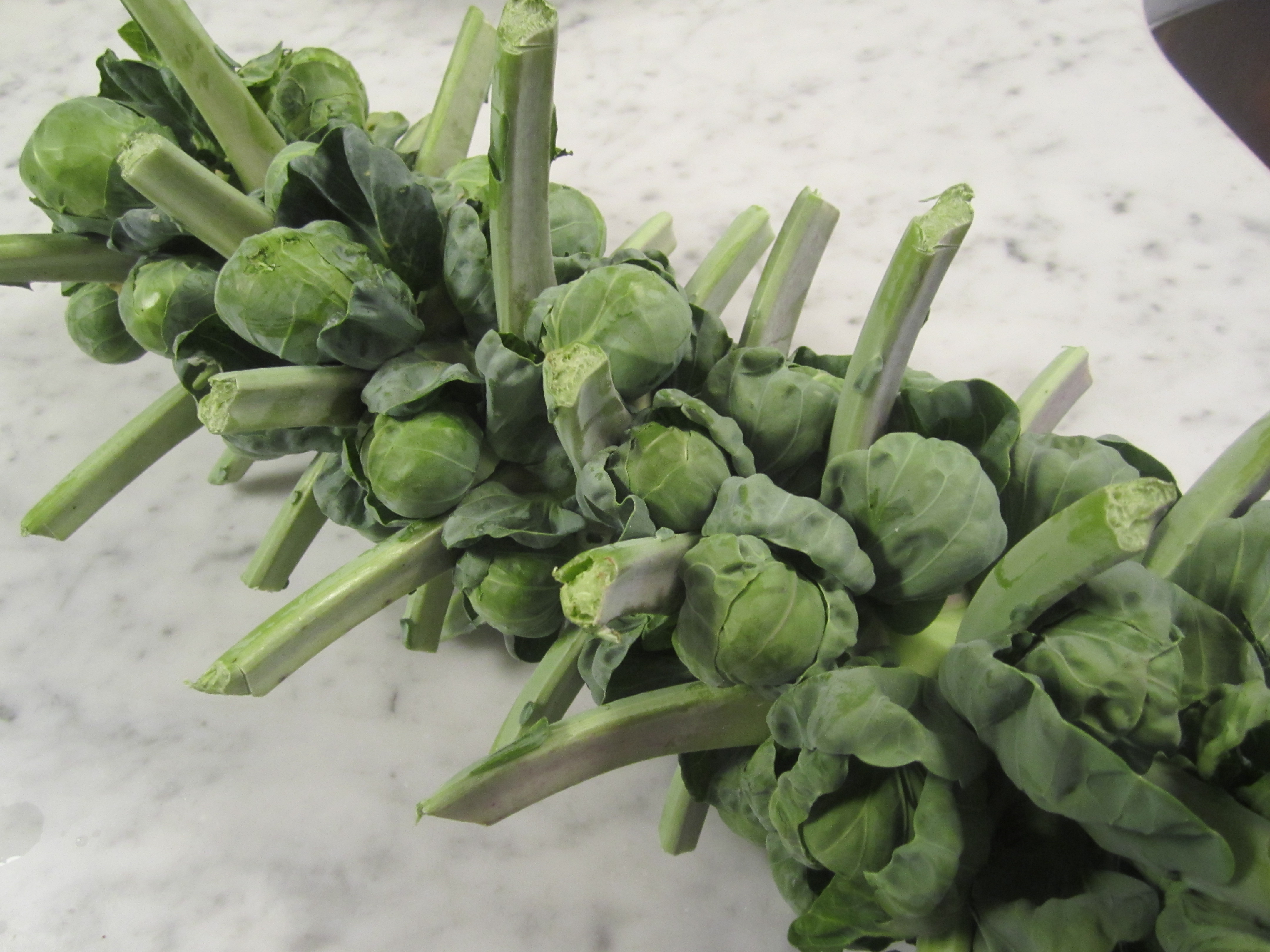 This is a great fall side dish for a variety of meats and poultry. When I see brussels sprouts on the stalk at my local farm stand, I immediately think of Thanksgiving and turkey.