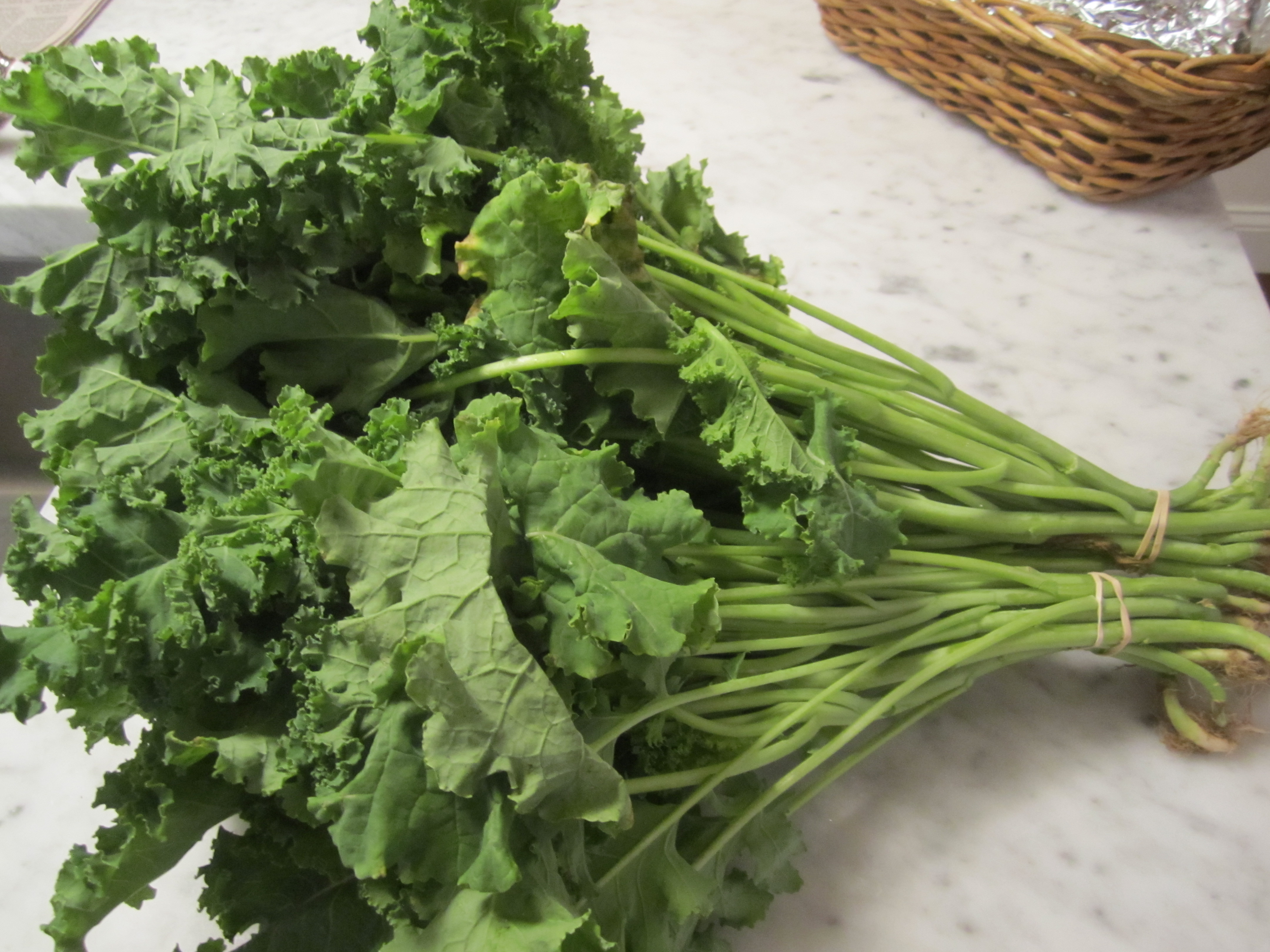 My farm stand has been selling a smaller more delicate variety of kale that I love to use because I don’t have to strip the leaves off the stems–I can simply chop across the stems crosswise and use virtually the entire stalk.