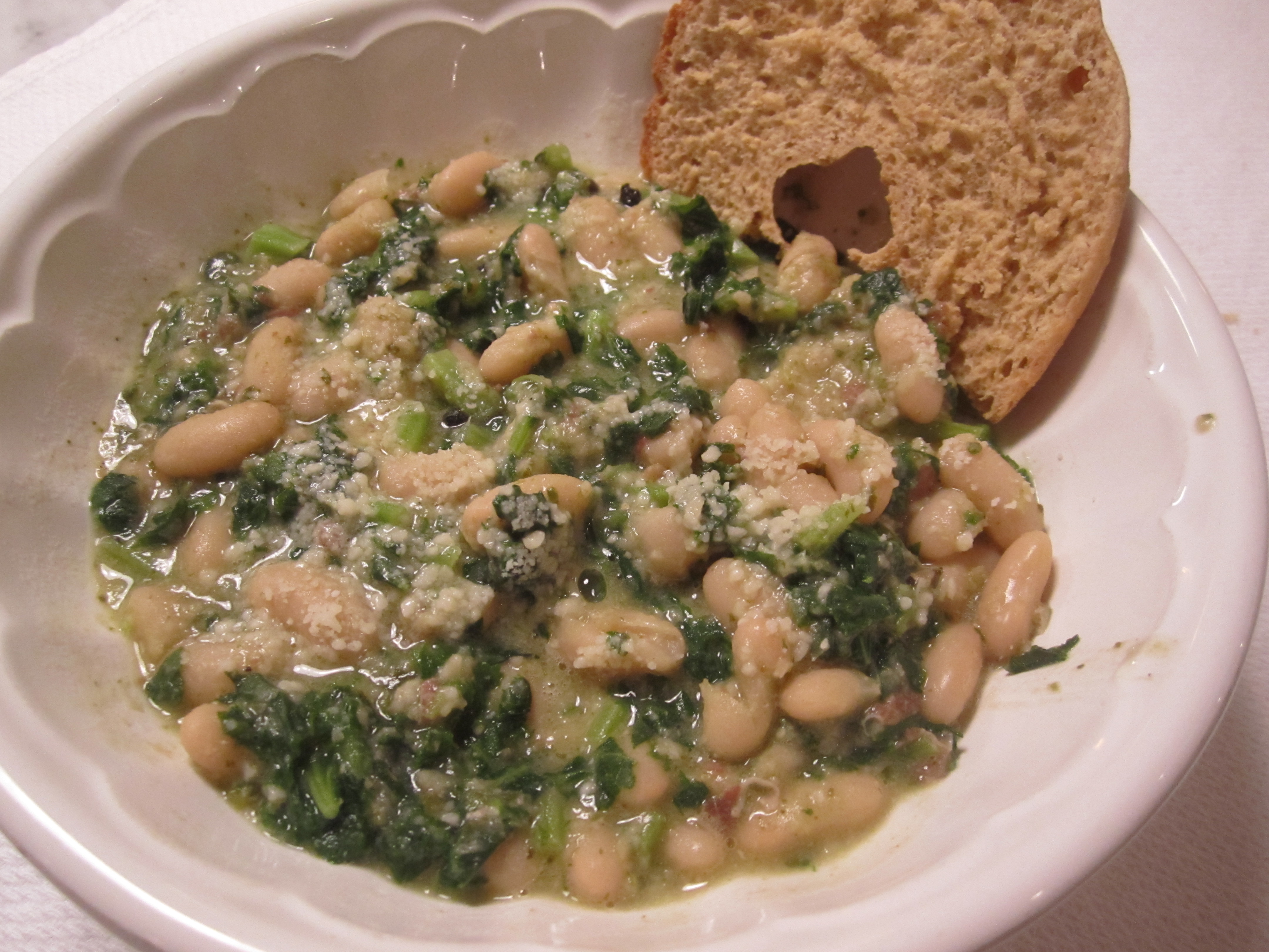 Return the beans to the pot, along with bean puree and enough bean cooking liquid to make the mixture creamy but not too soupy. Add in the kale, if using. Serve with bruschetta, grated pecorino romano and a drizzle of extra-virgin olive oil. May be frozen indefinitely, without any ill-effects.