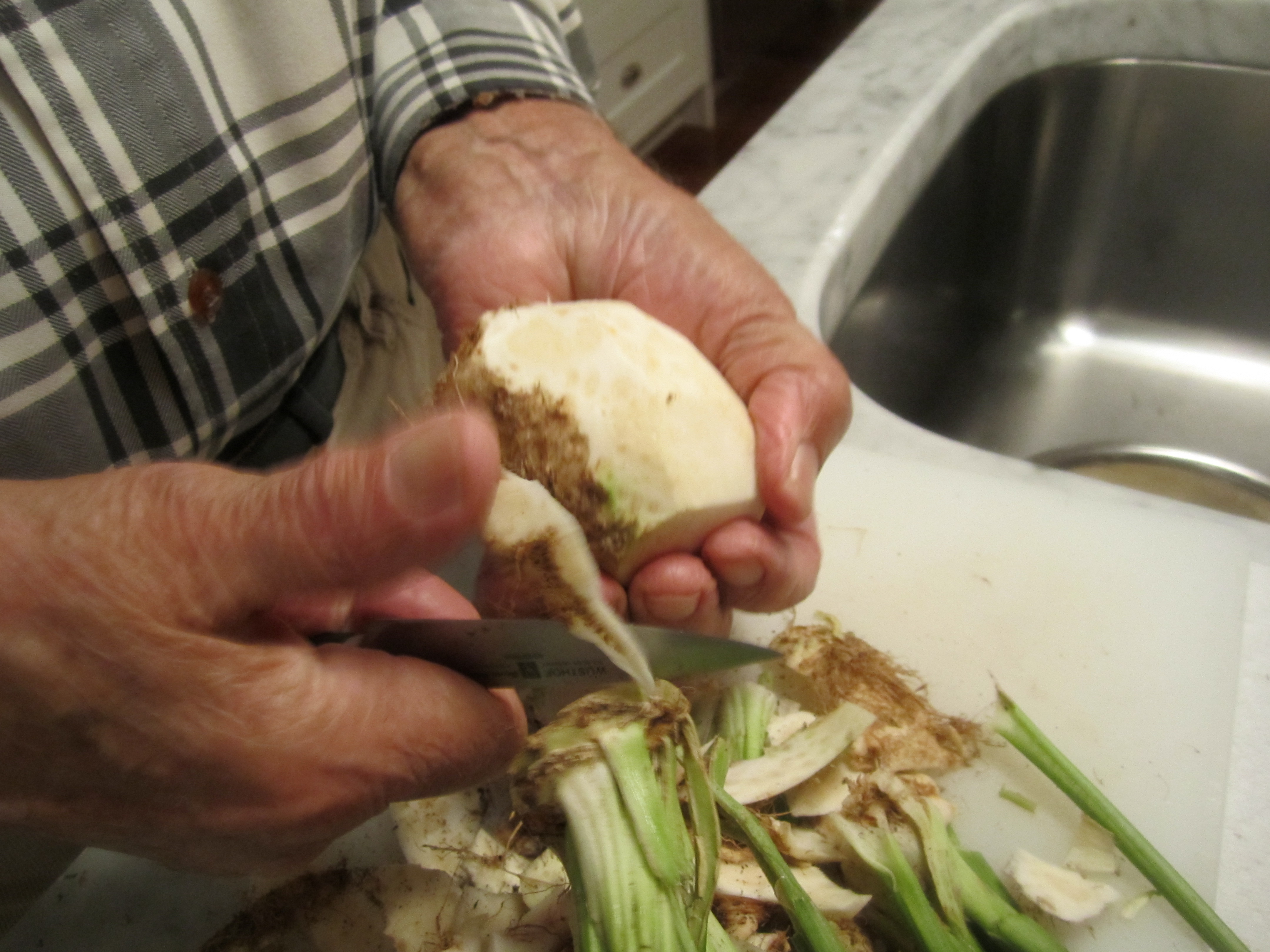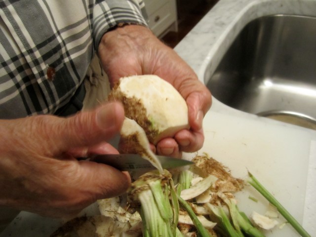 This year, Beppi offered to come over and give me a lesson in making the soup and I eagerly accepted. He showed up at my door with the most beautiful roots, just pulled from the ground.