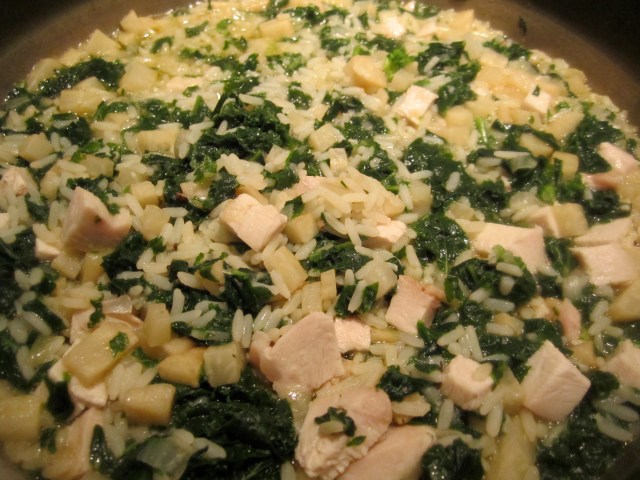 1 1/2 c each of diced turkey meat and cooked, drained kale (optional)