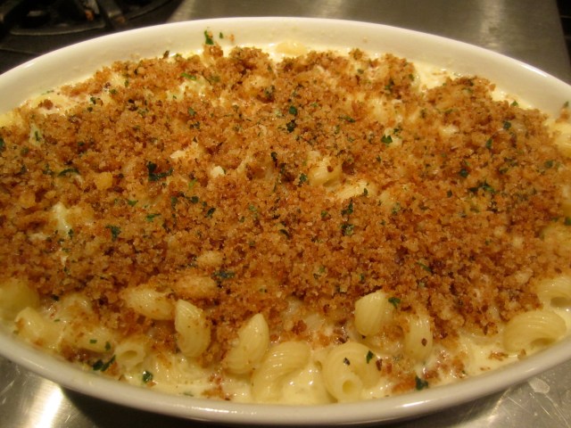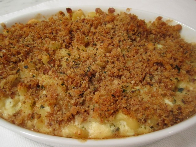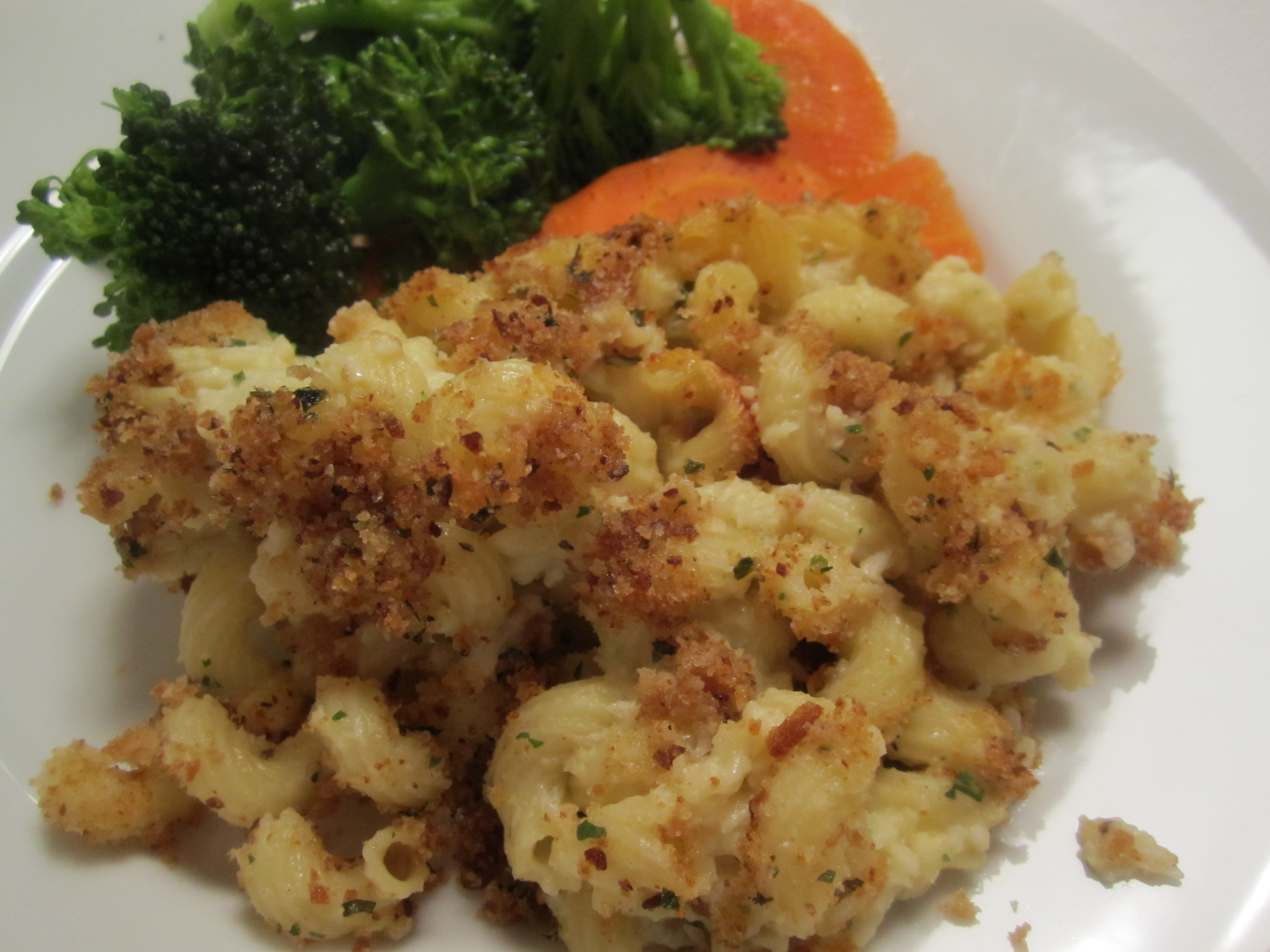 The perfect accompaniment to this rich dish was some simply boiled broccoli and carrots–all the better to soak up the cheesiness and crumbs!
