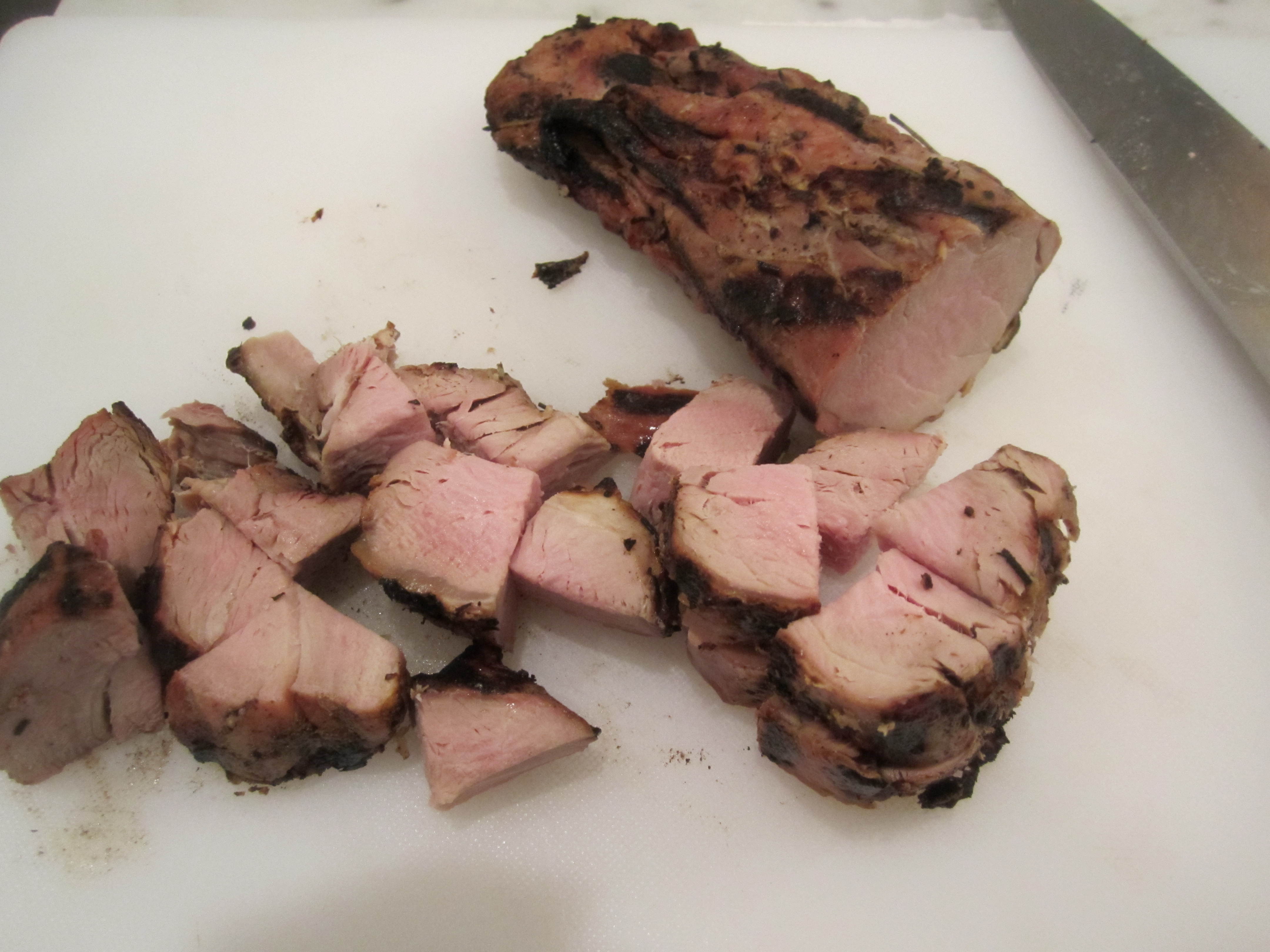 I have a dry-rubbed grilled pork tenderloin left over from my dinner the other evening. Yes–this is another lesson in recycling leftovers–one of my favorite pastimes.