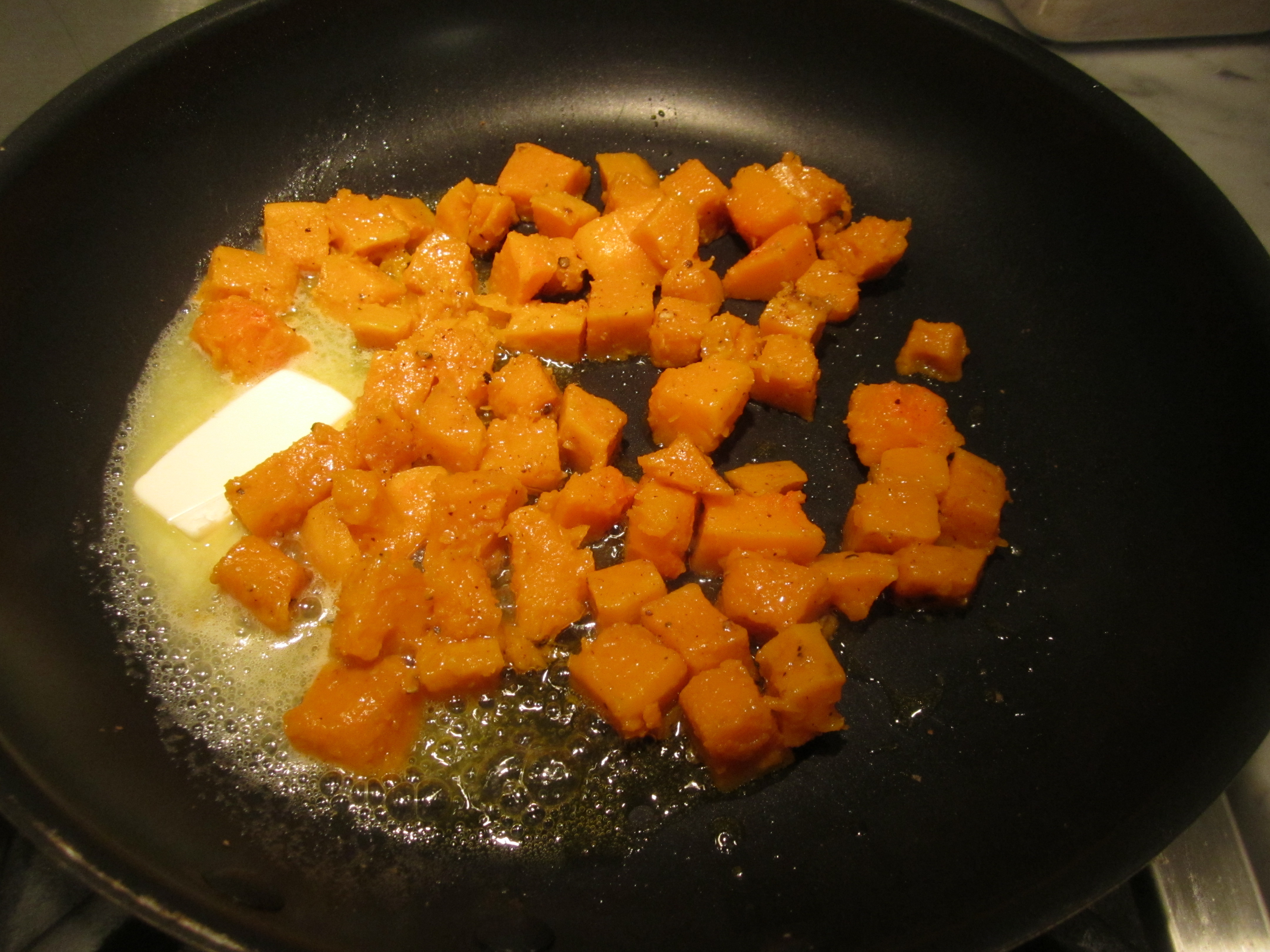 3 cups butternut squash, peeled, seeded and diced into 1″ cubes