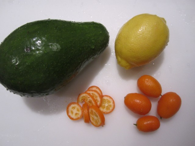 For a last-minute dinner for four, I ran to Publix with no preconceptions about what I’d cook, except that it had to be quick and not use too many (electric) burners at one time. I went right to the produce section and found instant inspiration in some great-looking salad ingredients–avocadoes, kumquats and lemons–all grown in Florida.