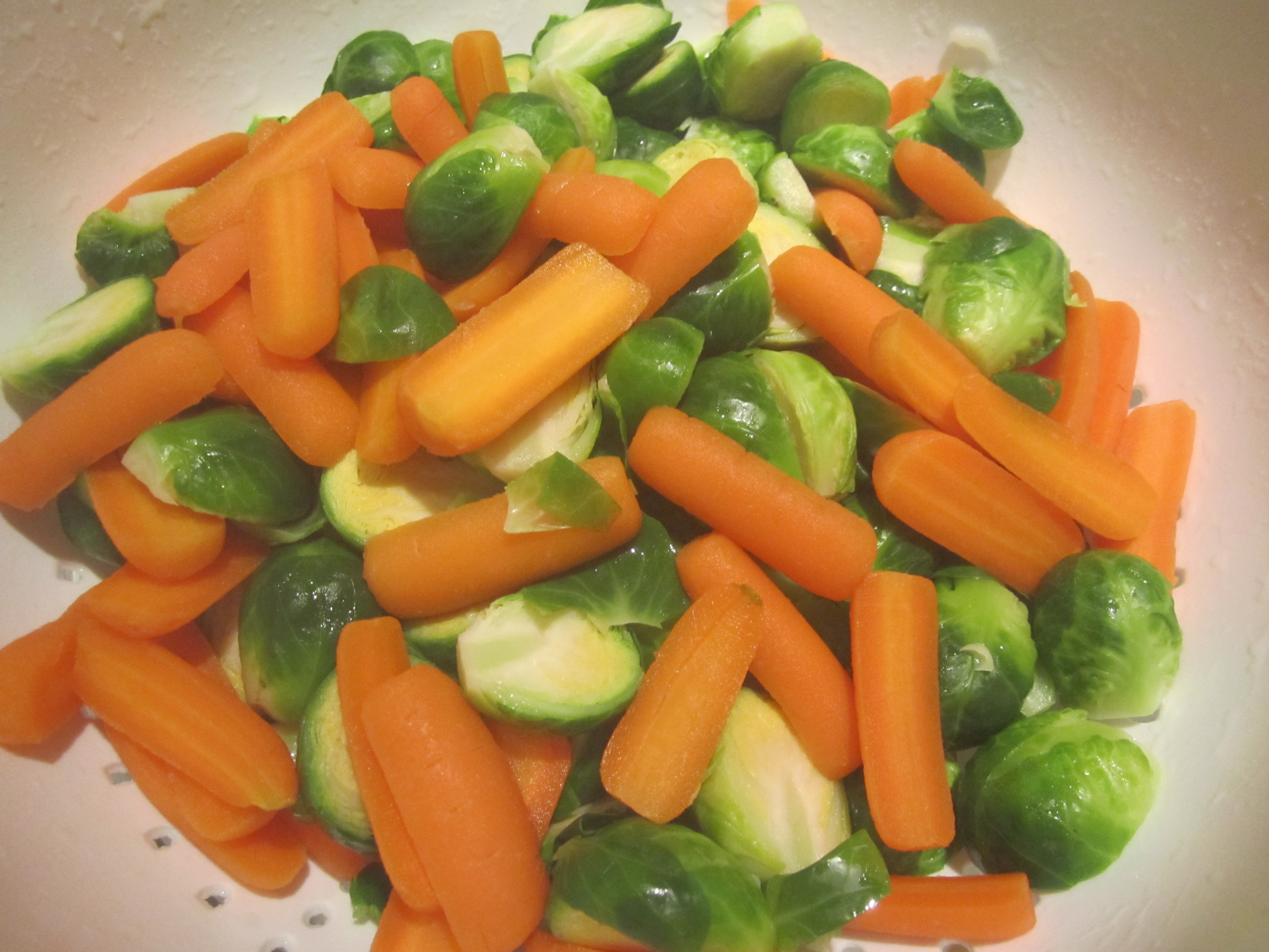 Although a side dish may not me necessary with this stew, I chose to make brussels sprouts and carrots as an accompaniment, since I don’t ever like a plate containing only brown food.
