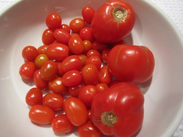 1 c coarsely diced plum tomatoes or cherry tomatoes, halved