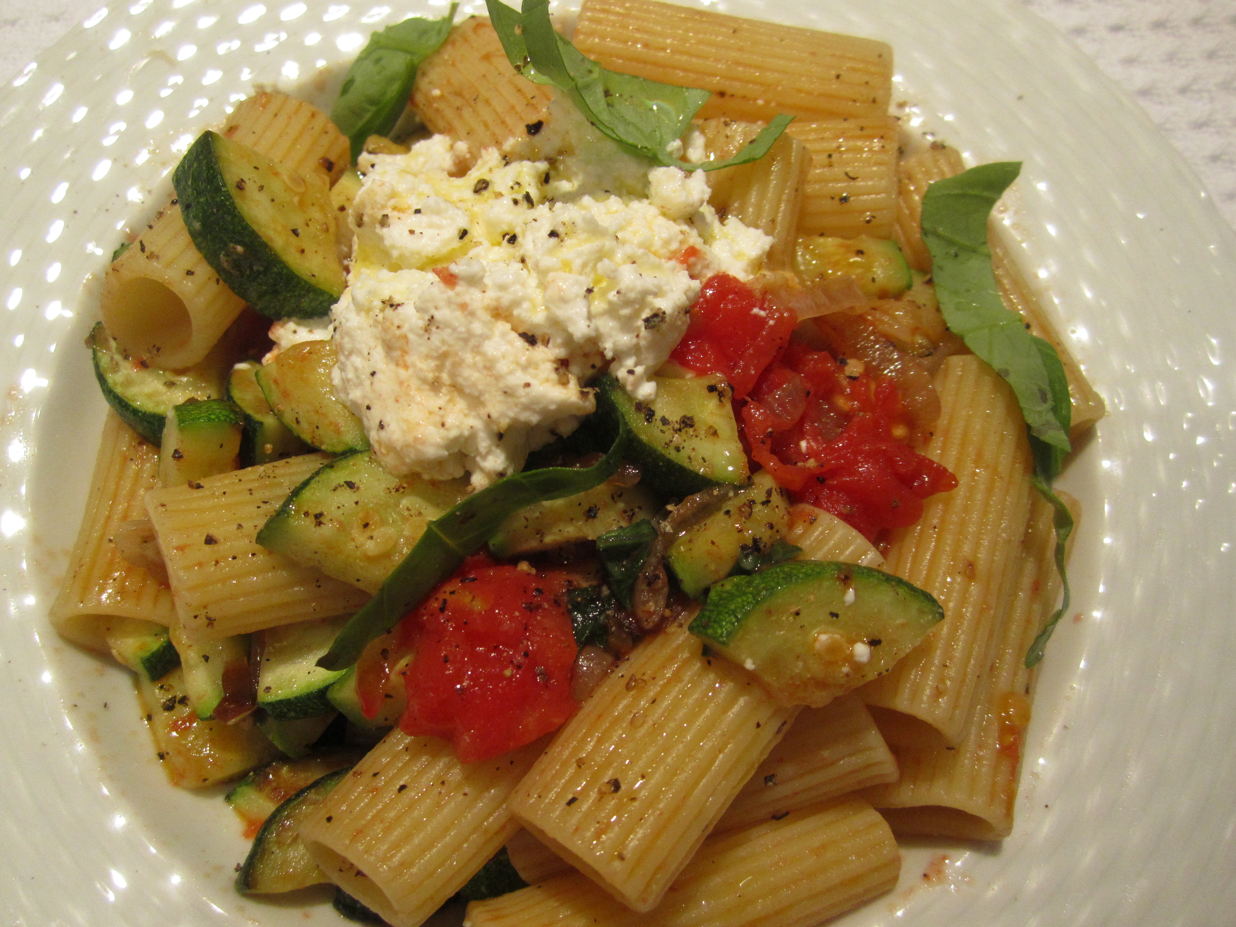 Pasta with Zucchini, Fresh Tomatoes and Ricotta