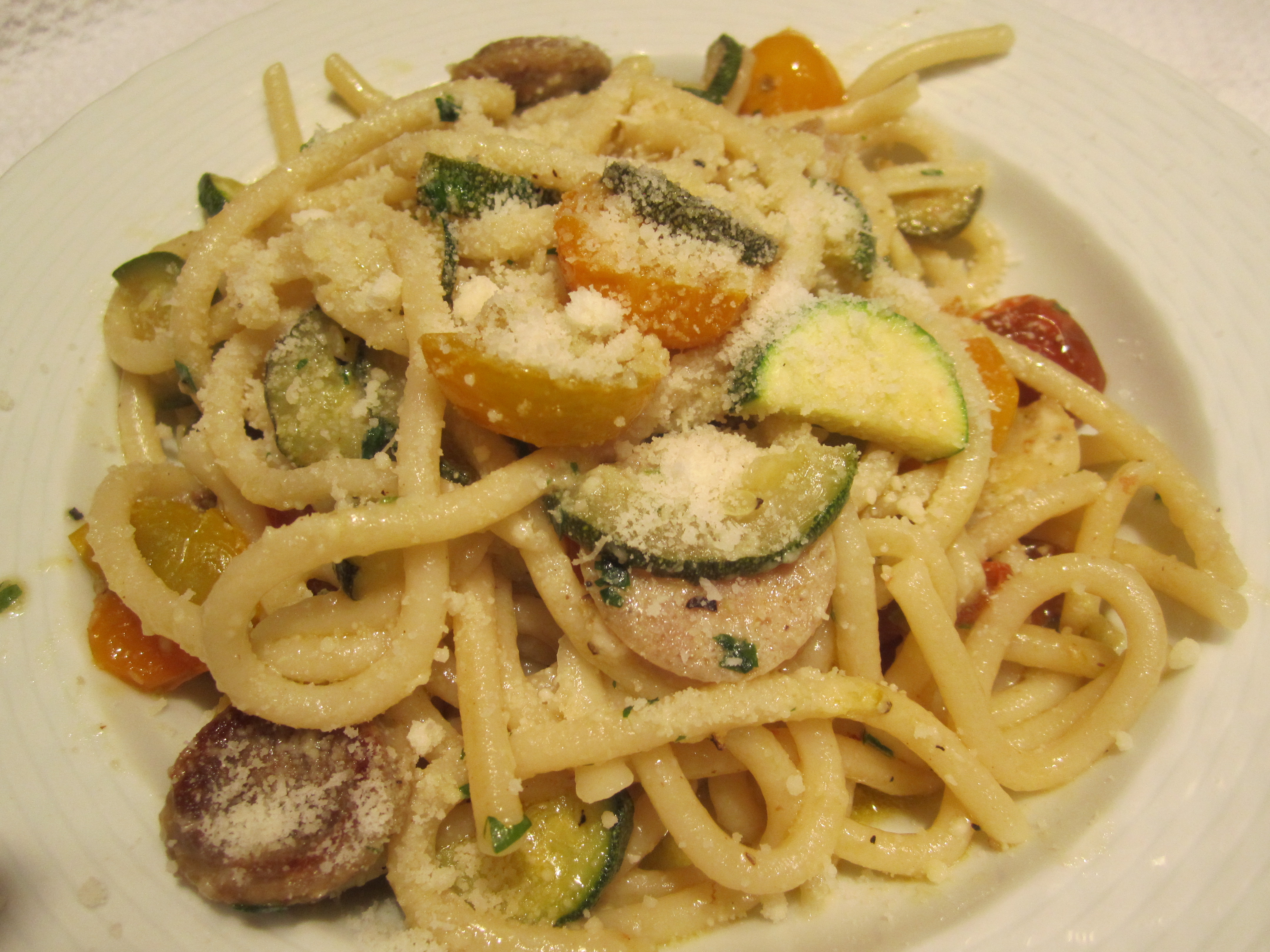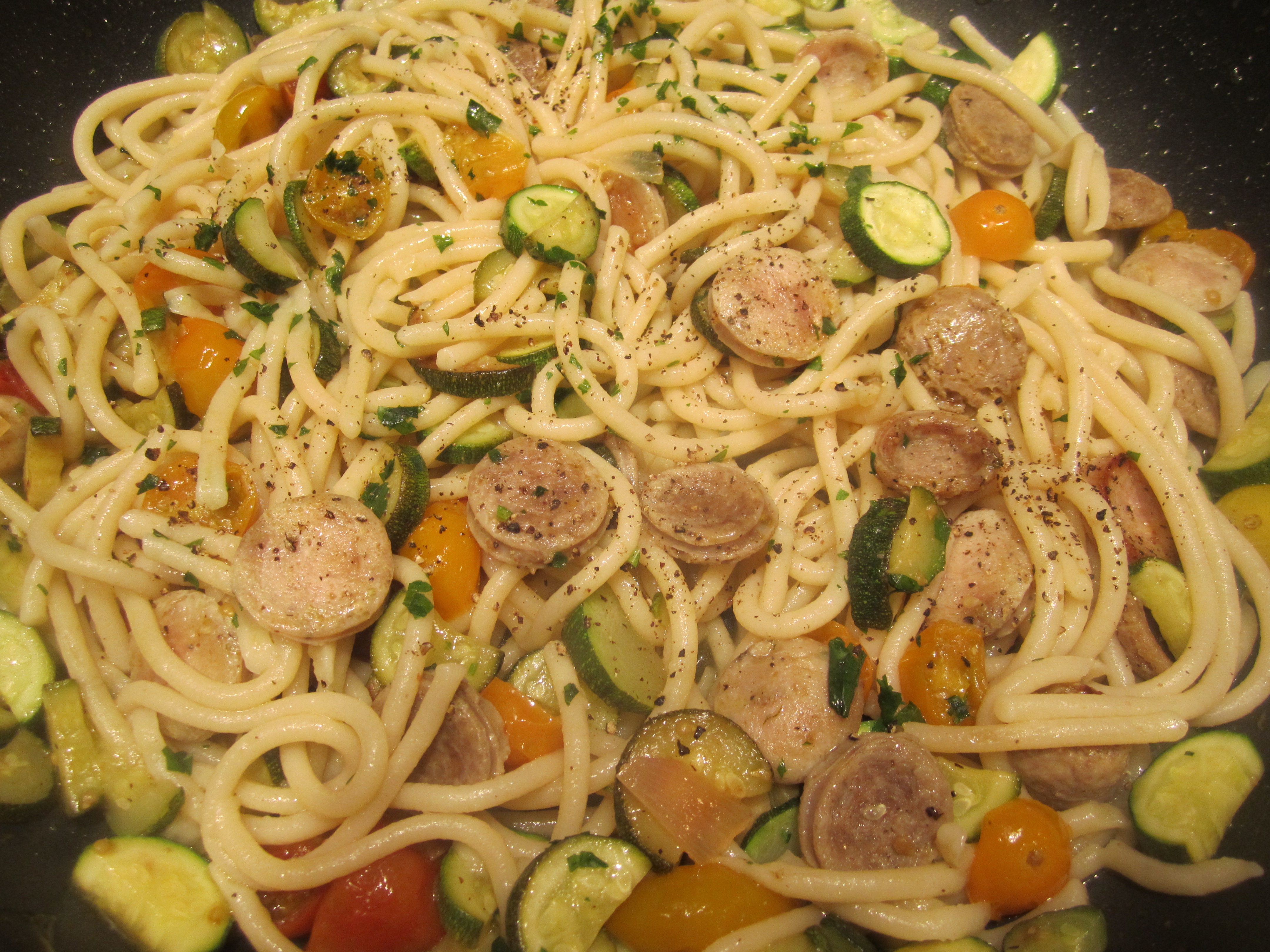 Pasta with Zucchini, Sausage and Cherry Tomatoes