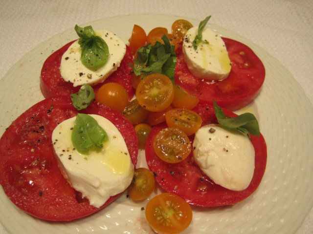 I’m not sure how many photos of caprese salad I’ve posted in the course of this journal, but I have one almost daily, and each day I think–this is the best thing I’ve ever eaten!