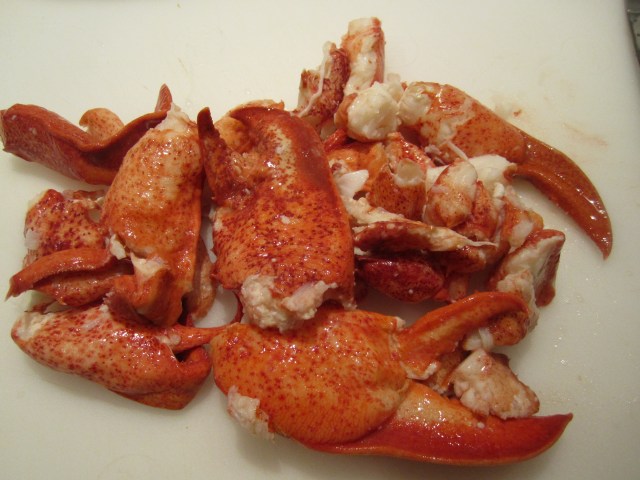 This dish would work using any of a number shellfish or mollusks (mussels, scallops, shrimp or crab). My seafood vendor had the most beautiful cooked, shelled Maine lobster meat this morning, and I am partial to lobster over those other shellfish. I asked to smell it and taste it, and it tasted as good as it looked.