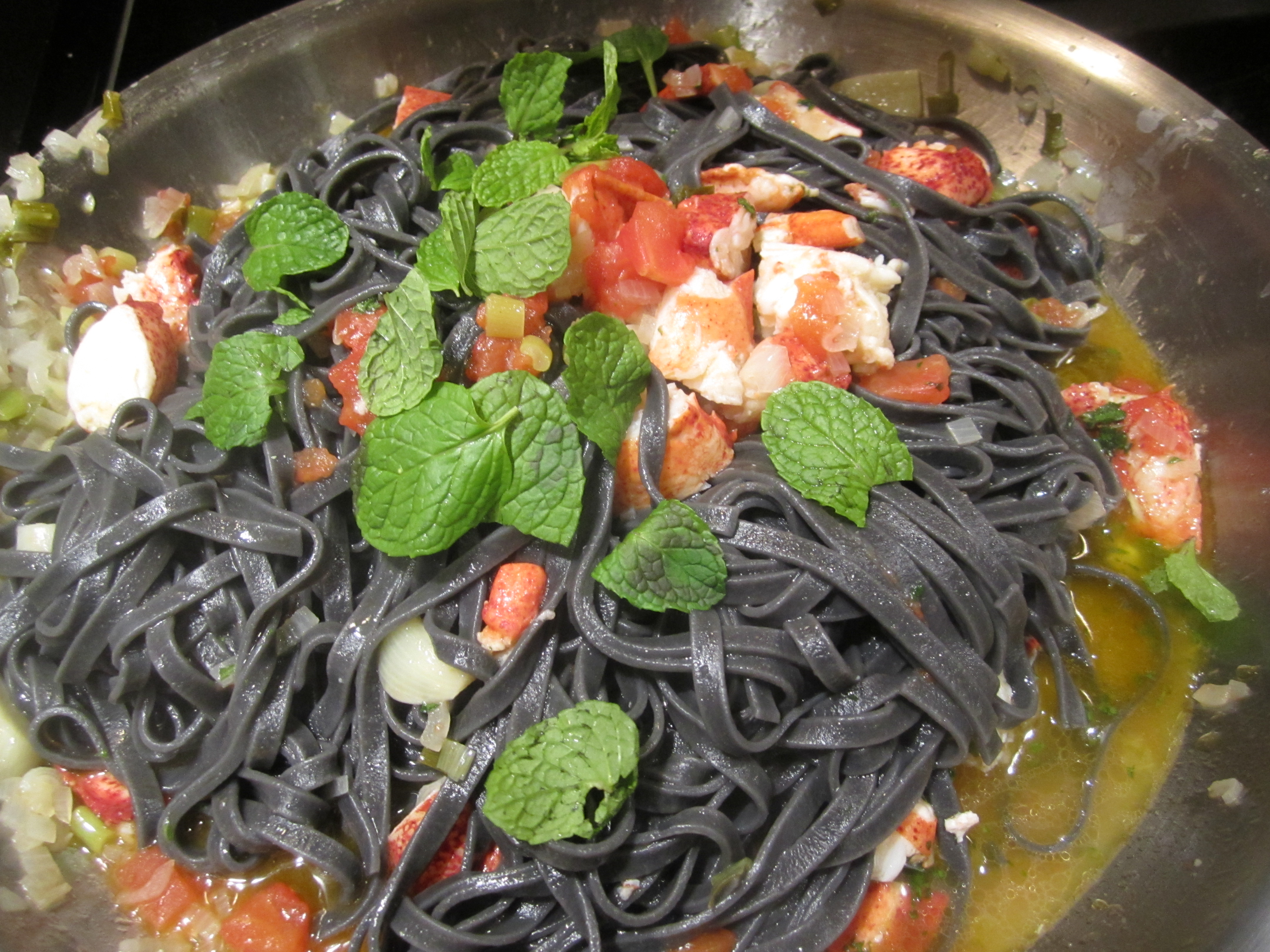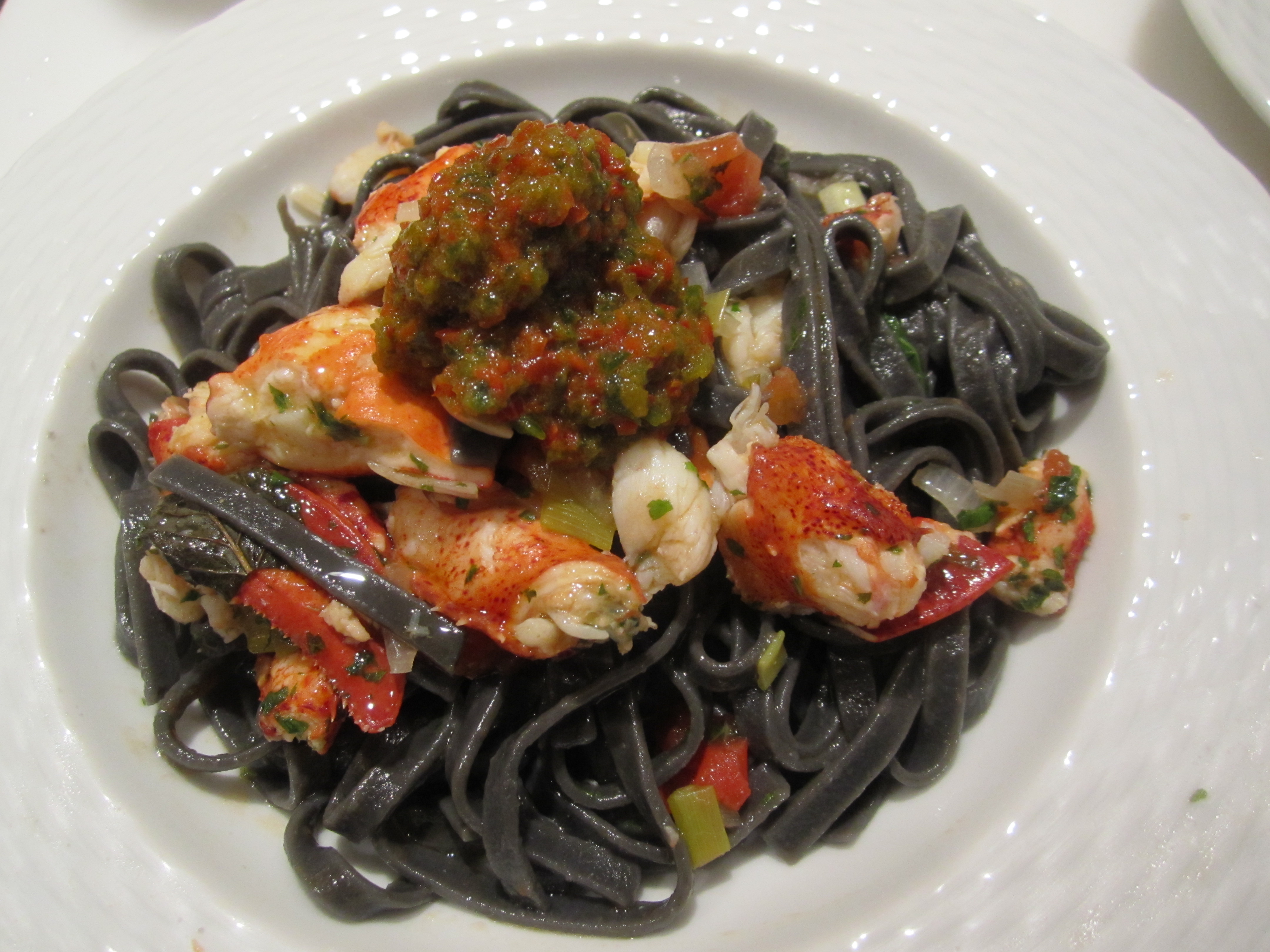 Spicy Squid Ink Linguini with Lobster and Jalapeno Pesto