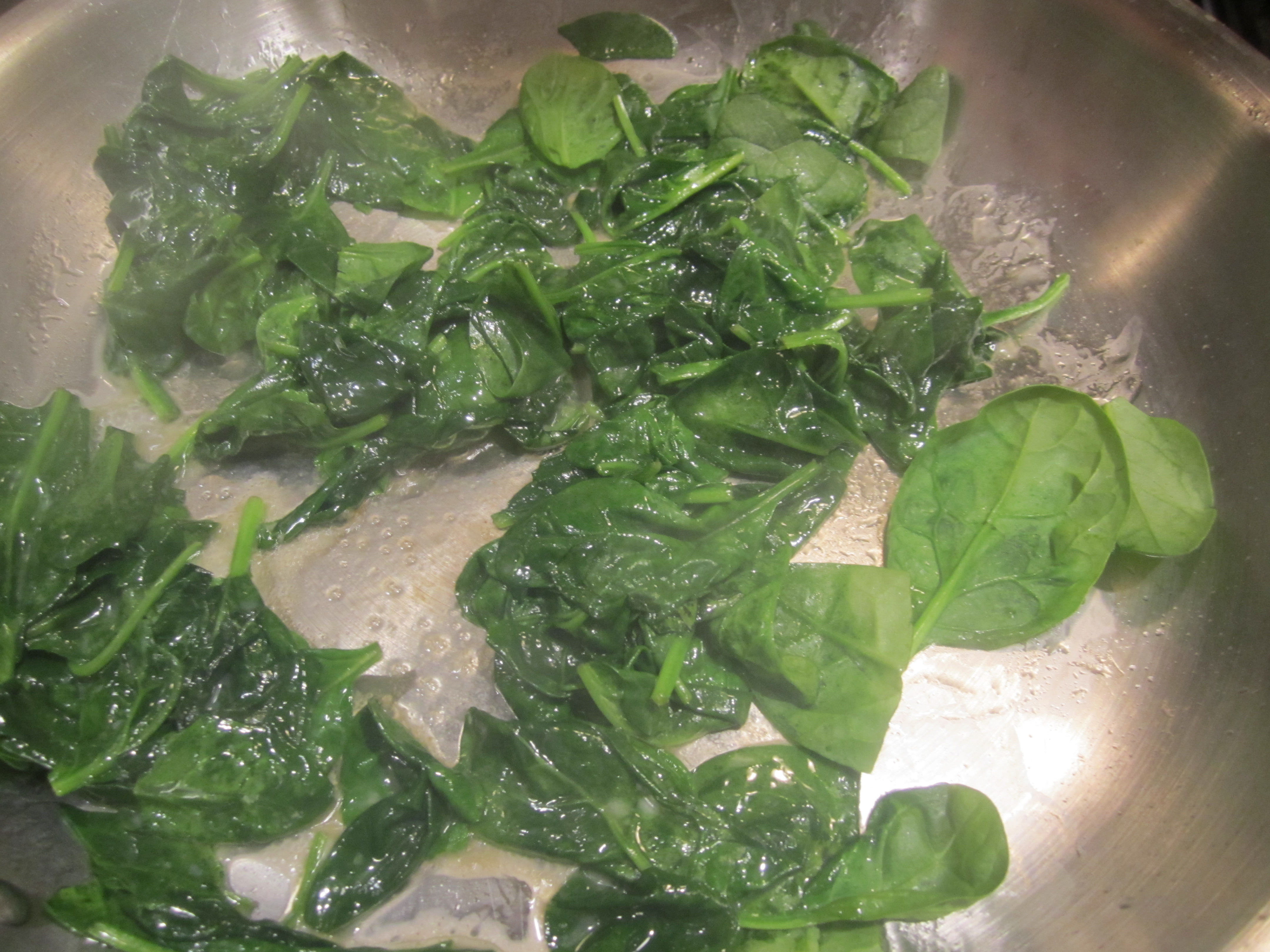 That’s the dish–no sauce to make, no aromatics to peel and chop–nothing except spinach to wilt. You’ll want to repeat this dish over and over again.