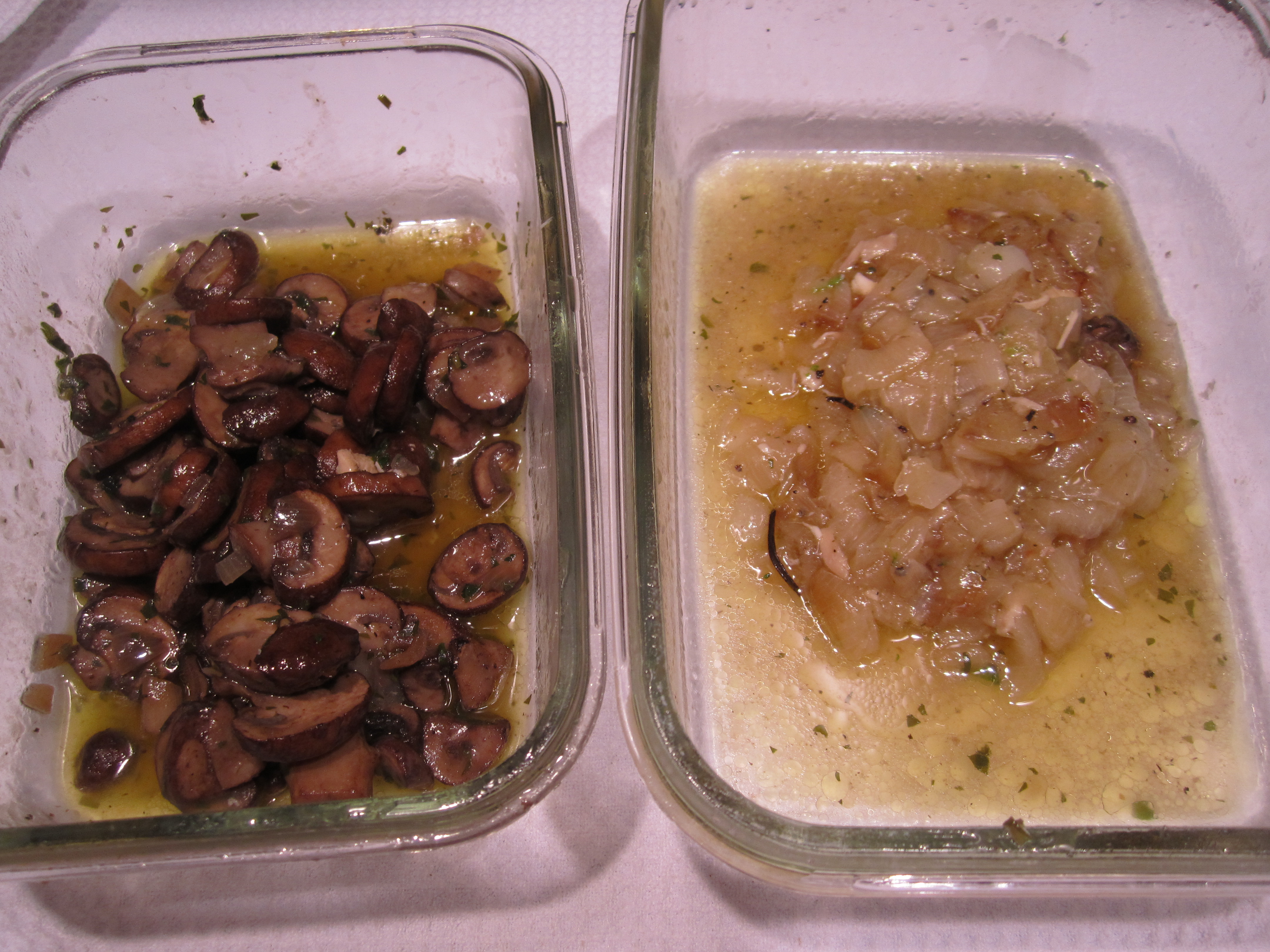In case you don’t have leftover cooked mushrooms, I’ll give you the recipe for the ones I made, then all you’ll need are some onion-laced drippings from a roast chicken (or from the roast chicken breasts featured in my post from the other day).