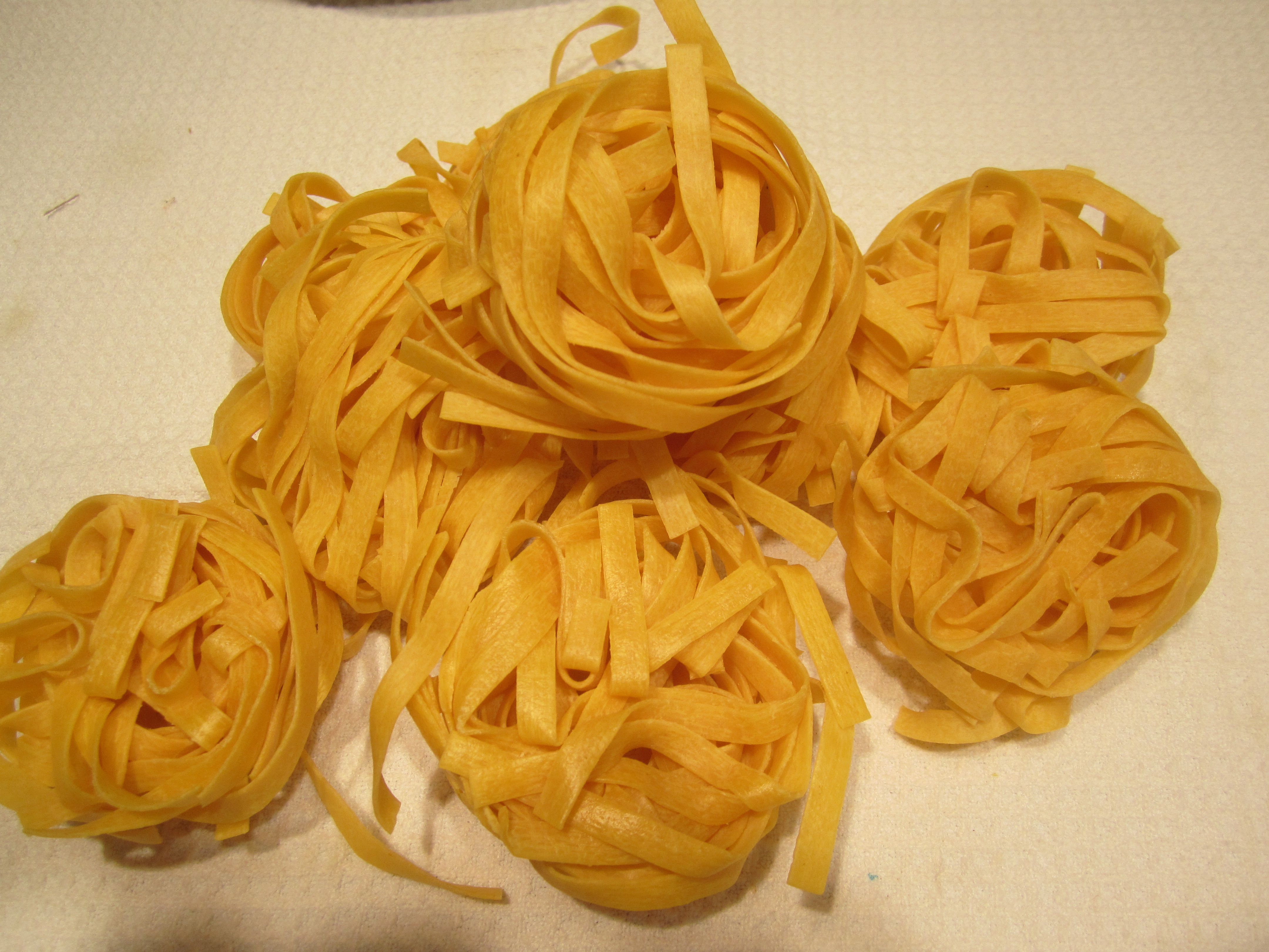 For this dish, I decided to use dried, imported egg fettucine, because the beautiful yellow color of them reminded me of the those bright orange egg yolks in Italy.